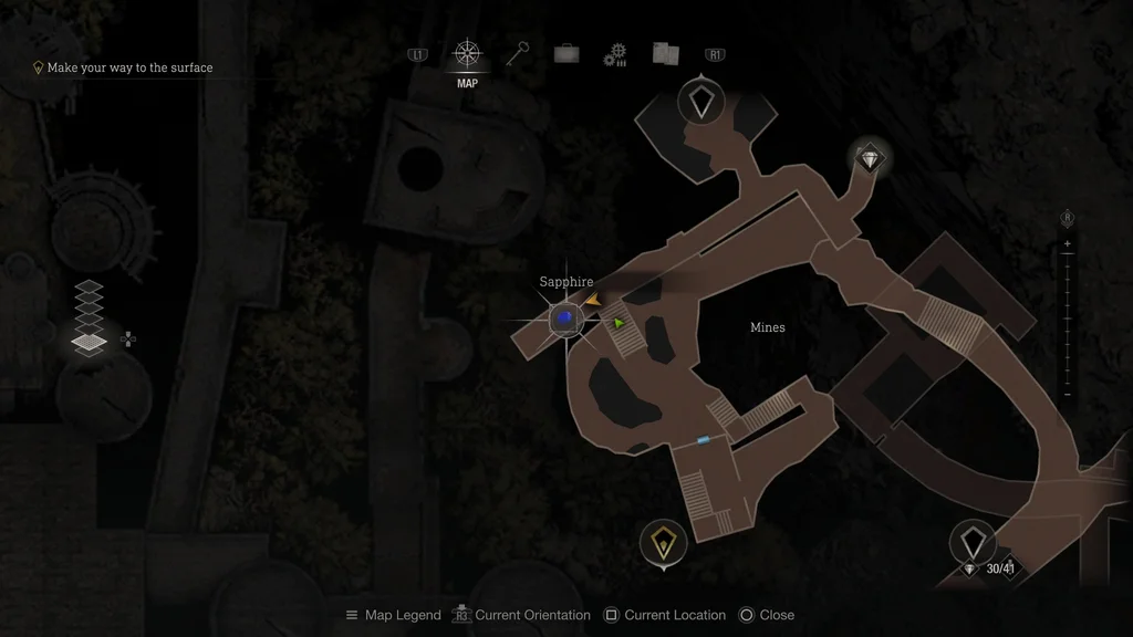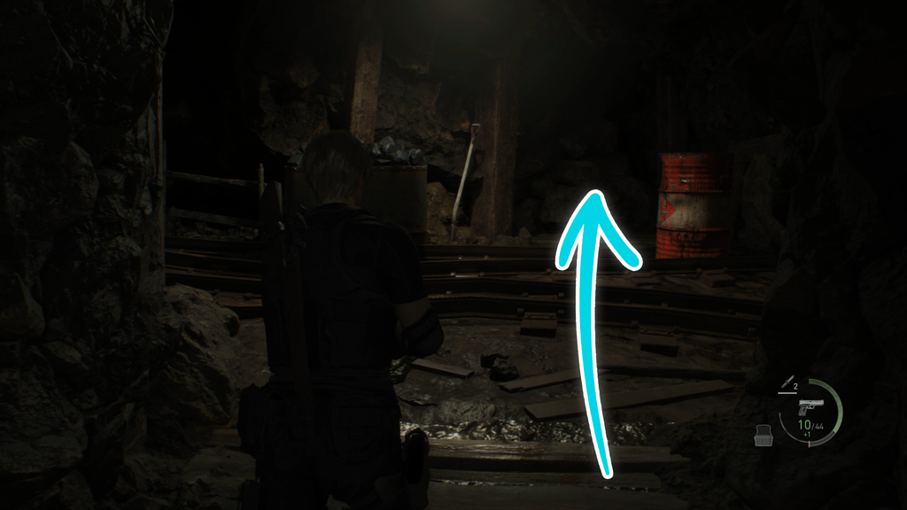 Подорожуючи з Луїсом, ви незабаром дізнаєтесь, що вихід заблоковано несподіваним обвалом. Через це ви ризикнете спуститися північно-західною стежкою, щоб шукати динаміт. Незабаром ви опинитеся в області, яку ваша карта позначає як "Шахти". Переможете тут усіх ганадо, а потім підніміться сходами, що ведуть на північ. Поверніть ліворуч у верхній частині сходів, і Скарб буде висіти на срібному ліхтарі біля тупика з коліями від вагонетки.