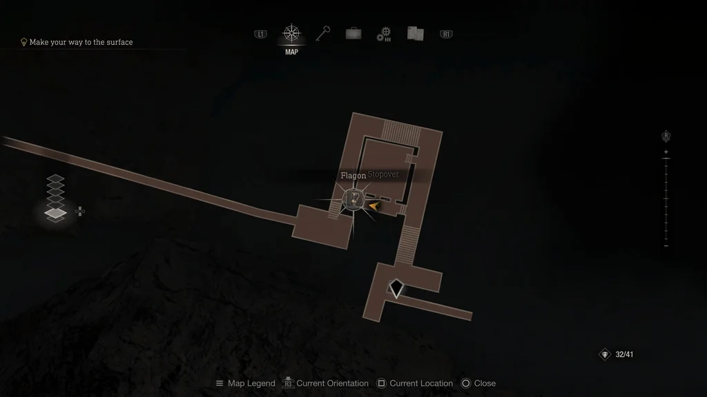 Flagon можна знайти в зоні Stopover, яку ви відвідаєте після початкової поїздки в шахті. Піднявшись сходами, поверніть праворуч, щоб знайти скриню на балконі, звідки відкривається вид на вагонетку.