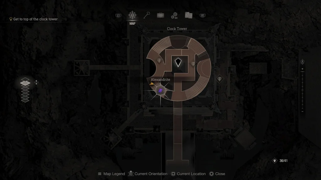 Коли ви очистите нижній рівень Годинникової вежі, підніміться двома сходами, і ви помітите вогнеметну статую Салазара ліворуч. Уникайте полум'я та обійміться за праву стіну, щоб знайти треті сходи, які ведуть у глухий кут. Звідси подивіться вгору та збийте срібний ліхтар, щоб отримати цей дорогоцінний камінь александрит.