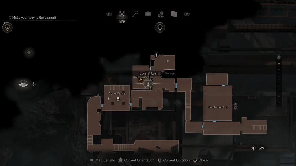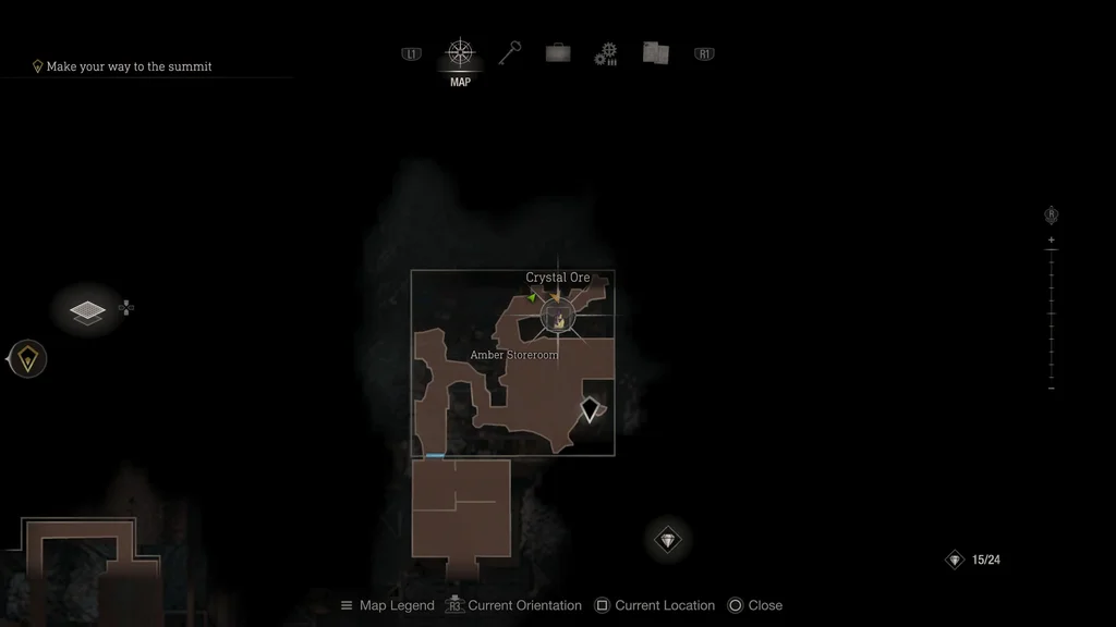 Цей скарб можна знайти на початку глави 14 після того, як увійшли до камери утримання Ешлі. Перш ніж покинути камеру утримання, обшукайте правий кут кімнати, щоб знайти цей скарб із кришталевої руди на планшетному візку.