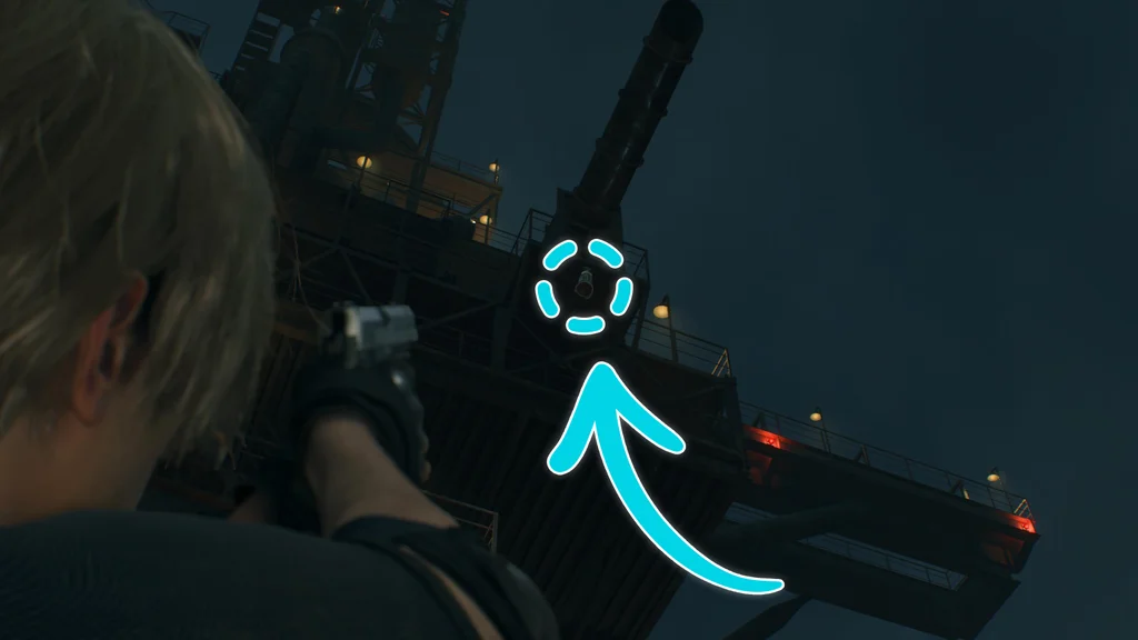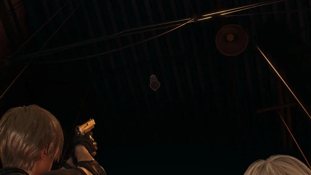 Коли ви покинете лабораторію Луїса на початку глави 16, підніміть Ешлі на другий рівень, і вона скине розбірну драбину. Піднявшись по драбині, подивіться на стелю над мостом і збийте срібний ліхтар, щоб зібрати цей скарб.