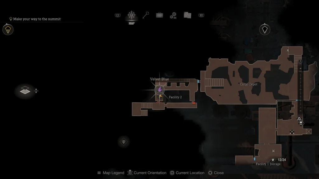 Цей скарб можна знайти відразу ж, піднявшись по драбині в Фортеці. Опинившись на вершині драбини, поверніться обличчям до мосту та подивіться вгору на ліхтарі, прикріплені до металевих балок. Ви помітите срібний ліхтар, що висить на металевій балці між цими вогнями. Збийте його, щоб отримати кристал Velvet Blue.