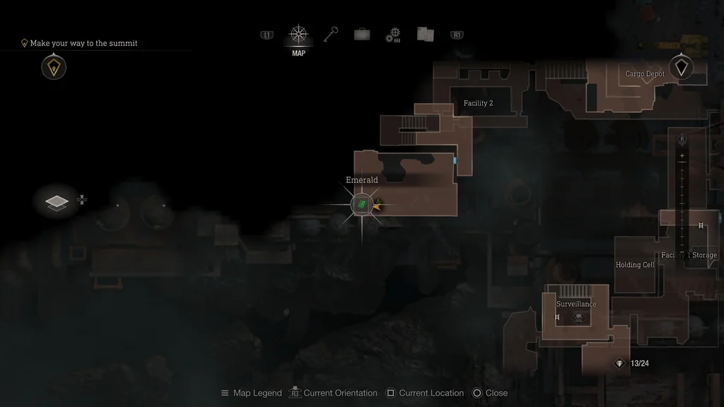 Цей скарб знайдено в заповненій стічними водами зоні на другому поверсі Об’єкту 2. Присідайте під труби, щоб дістатися до південно-західного кута території, і Смарагд опиниться на підлозі.