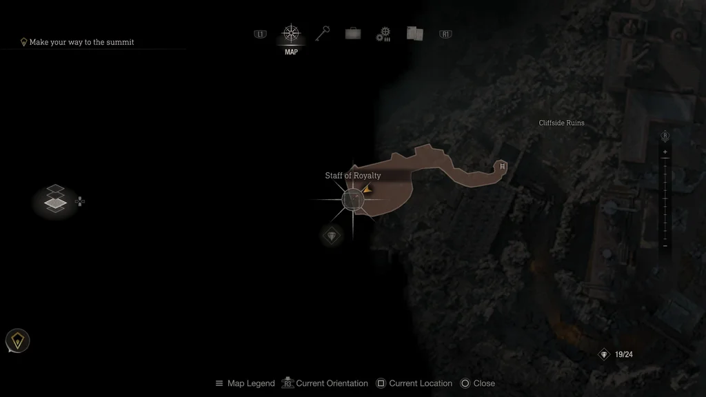 Після кат-сцени, в якій гелікоптер Майка розбитий, перемогти рій Новистадора, потім спустіться драбиною в сусідні руїни. Опинившись на нижньому рівні, пройдіть до кінця шляху, щоб знайти вишукану скриню, у якій зберігається Посох королівства.