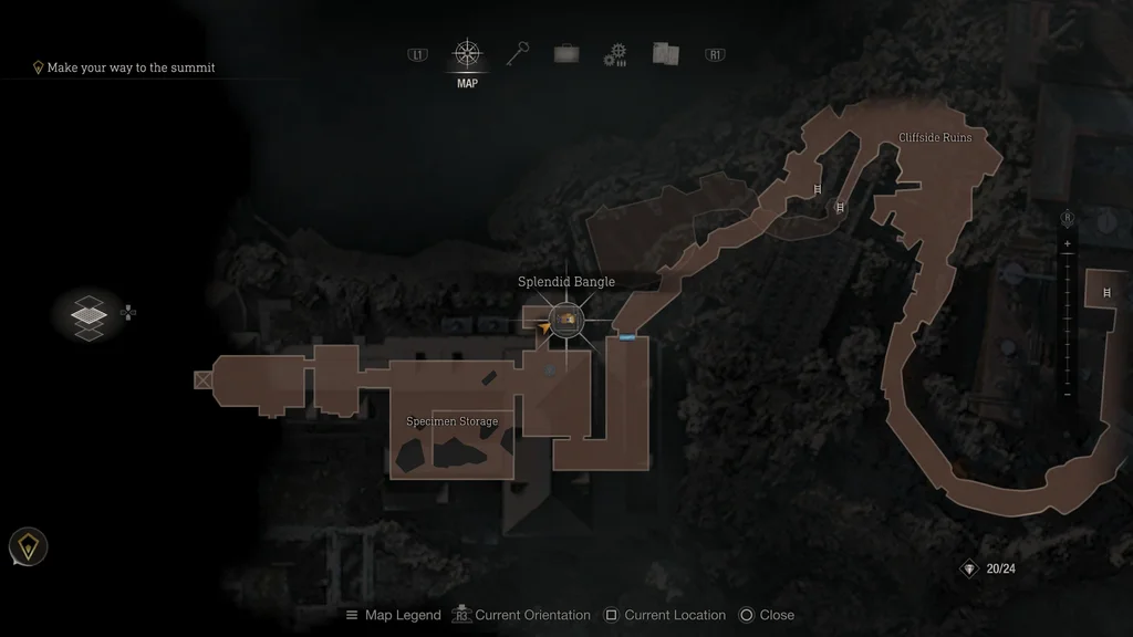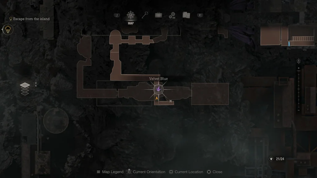 Порада! На початку розділу 13 – Острів пройдіть праворуч від першої лазерної сітки, а після перетину дерев’яного мосту поверніть ліворуч. Тут ви знайдете торговця, який продає карту скарбів: острів в обмін на 5x шпінель. Отримавши цей предмет, на вашій карті з’являться маркери, які вказуватимуть розташування кожного з 24 скарбів острова.