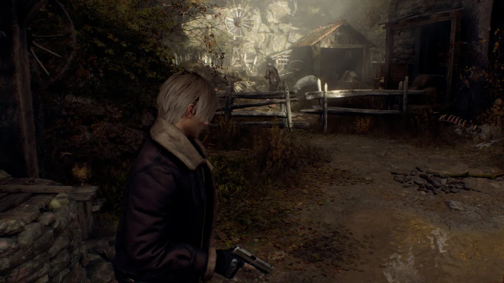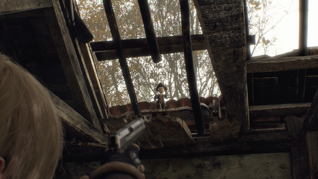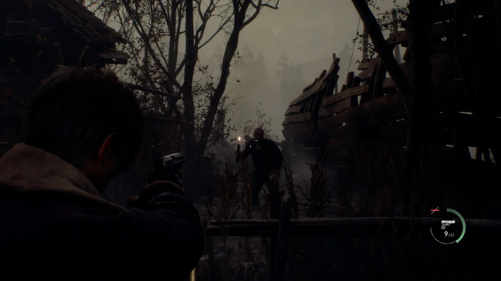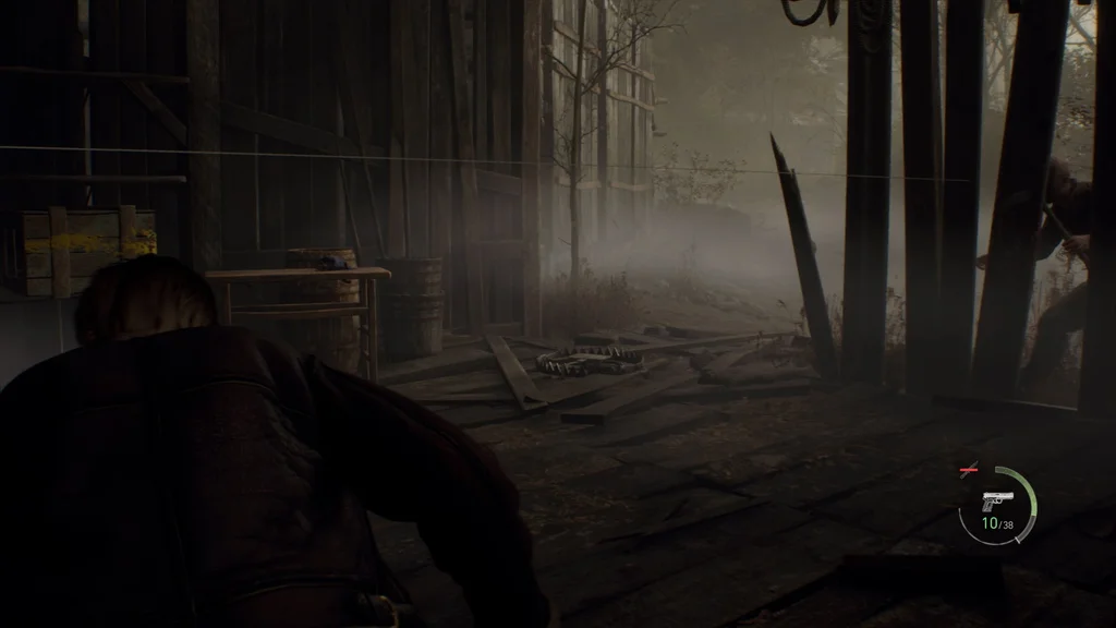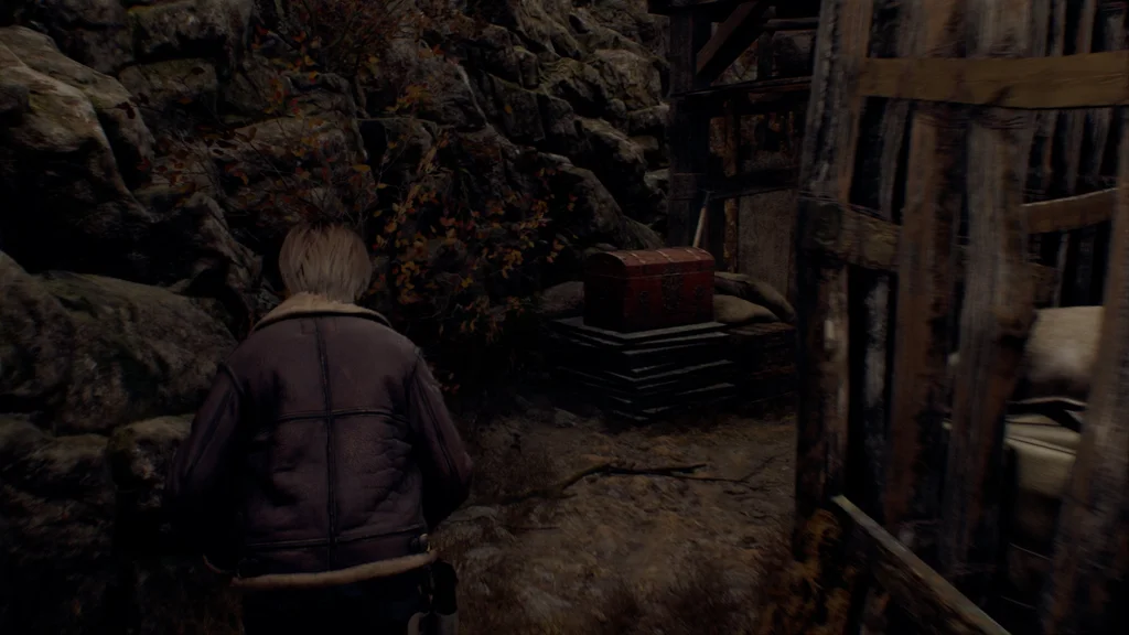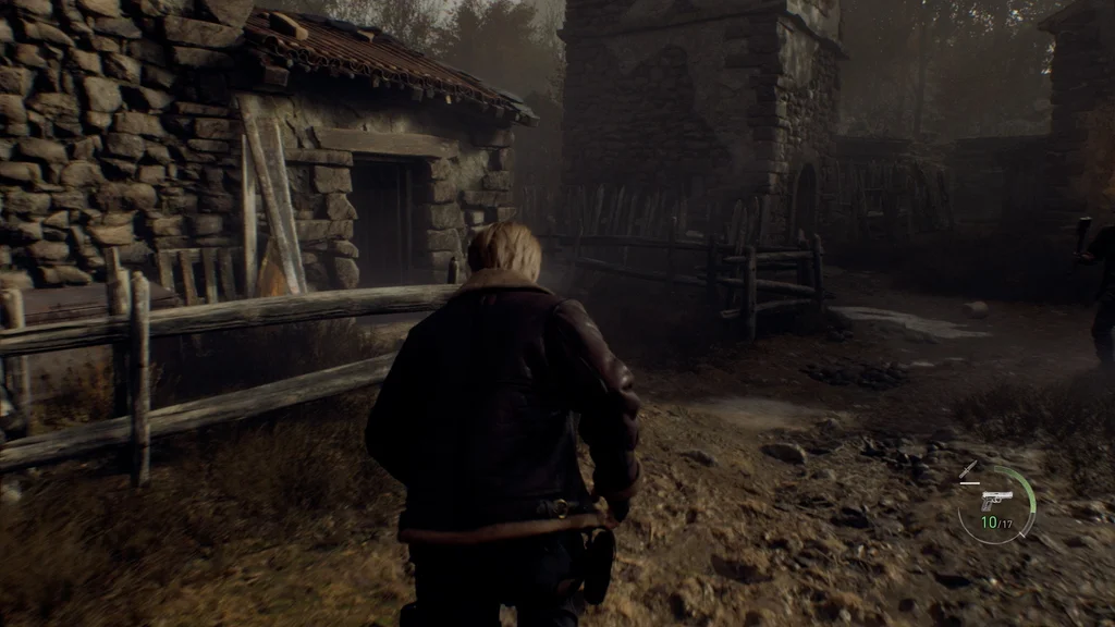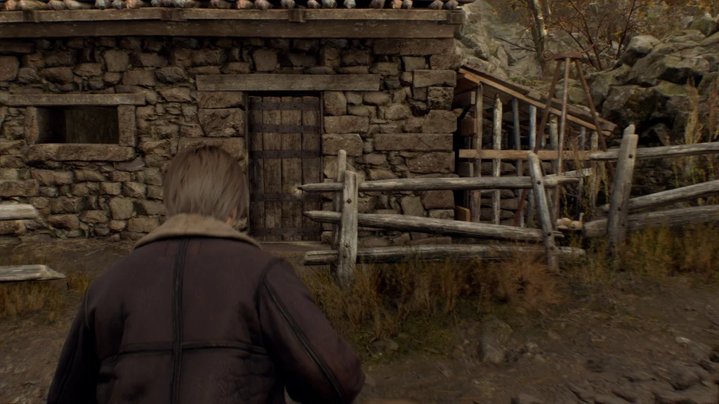 Залишивши кімнату збереження, вийдіть із халупи, щоб почути ще звуки Ганадо десь поблизу. Шлях приведе до вбитого вовка та кількох ворон (застреліть їх, якщо хочете), а також іншої зруйнованої будівлі ліворуч позаду. Перевірте, чи немає всередині шухляди з іншими патронами для пістолета.