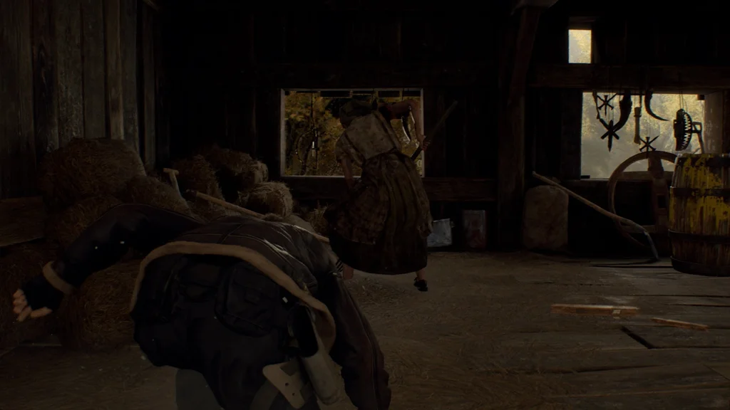 На жаль, після входу в амбар головний вхід розірветься, щоб продемонструвати абсолютно нового ворога для Resident Evil 4 Remake, Звіряка. Цей чоловік із головою бика володіє великим дворучним молотом, і його атаки не можна відбити вашим ножем. Його удари над головою завдають сильного ураження і він також може почати шалено обертати зброєю, тому дотримання певної відстані є найкращою стратегією для виживання. Якщо він підійде близько, натисніть на присідання, щоб ухилитися, але будьте готові відійти, коли він закінчить обертання ударом вниз.