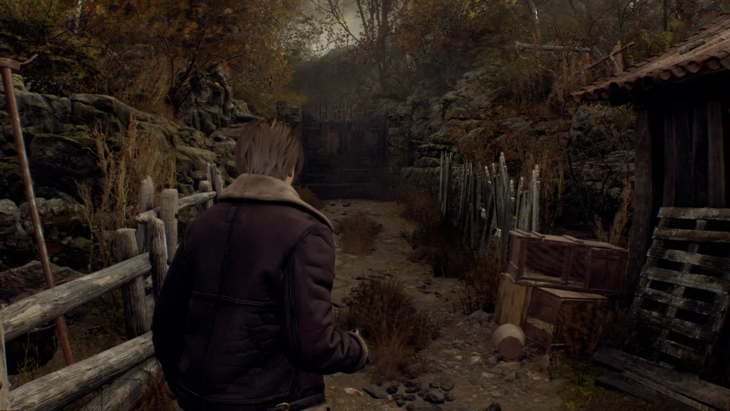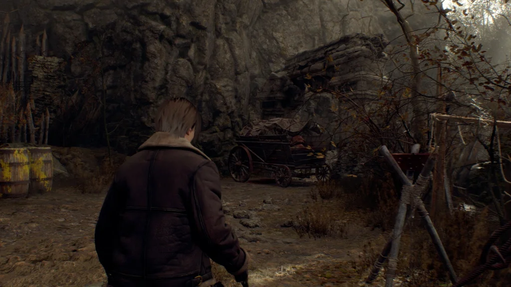 Будьте обережні, коли рухаєтесь вперед цим шляхом повз бочку. В оригінальній Resident Evil 4 під час руху по стежці встановлюється велика пастка-валун, але цього разу Ганадо мають для вас щось інше.