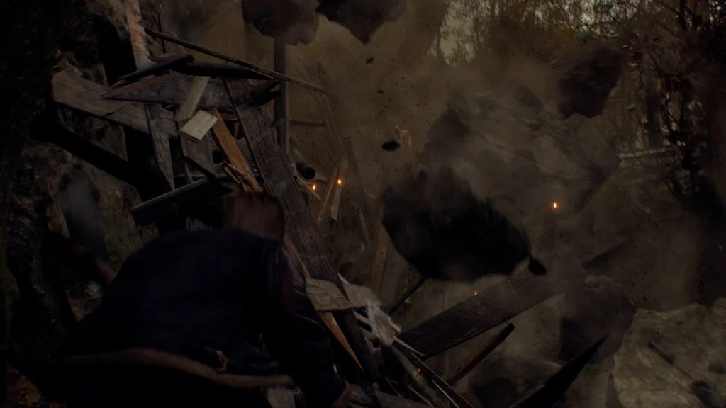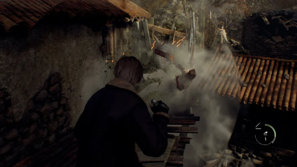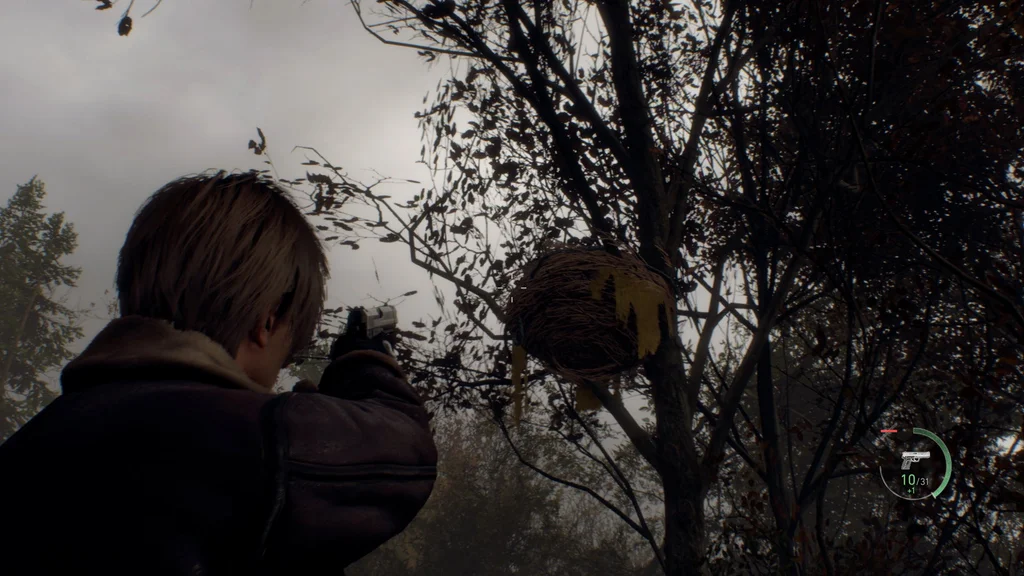 Якщо у вас є запасні боєприпаси, зверніть увагу, що ви можете стріляти в ворон, щоб іноді знайти такі предмети, як гроші, скарби чи порох. Поза домом також є бочка, забризкана жовтою фарбою - ці бочки та ящики можна розбити, щоб знайти всередині випадкові предмети, як-от патрони. Вам навіть не потрібно стріляти чи різати їх, просто натиснувши X, Леон розіб'є його на частини.