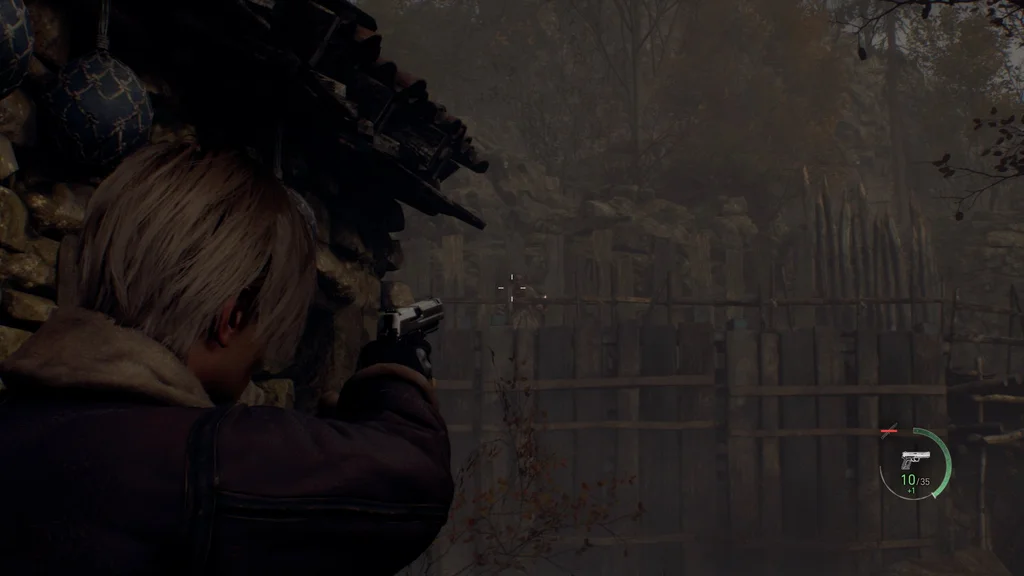 Праворуч від поля сміття є менший шлях, яким ви можете піти, коли на високому мосту з’являться ще два Ганадо, які кидають у вас зброю. Не поспішайте вступати з ними в бій, пробігайте повз і дивіться вперед, щоб вистрілити в жінку з вилами в кінці стежки.