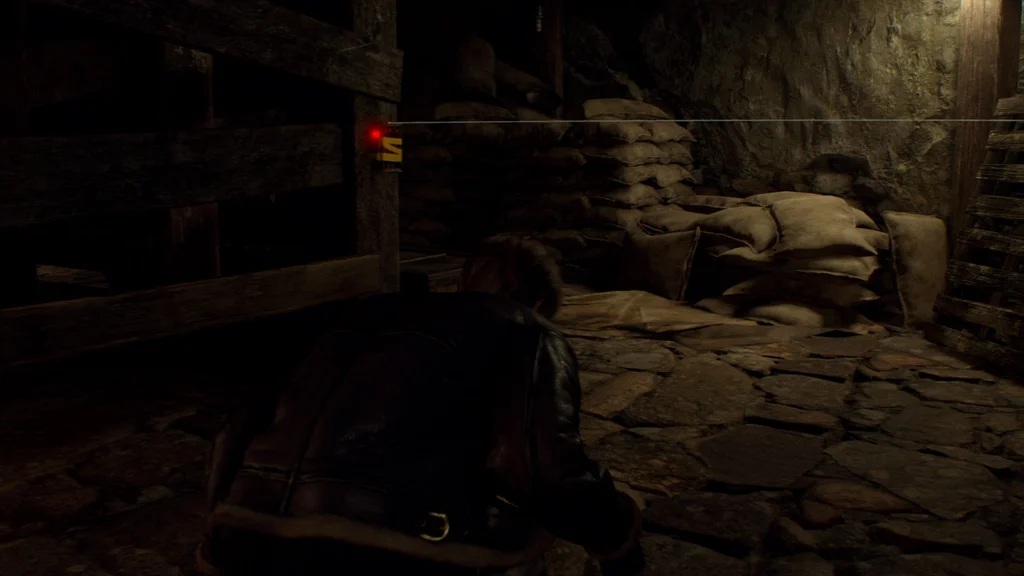 Увійшовши, прихиліться, щоб уникнути чергової міни, і приверніть увагу іншого Ганадо на дорозі, але дозвольте йому підійти до вас, оскільки на вході є ще одна ведмежа пастка, і ви також можете заманити його у вибухівку.