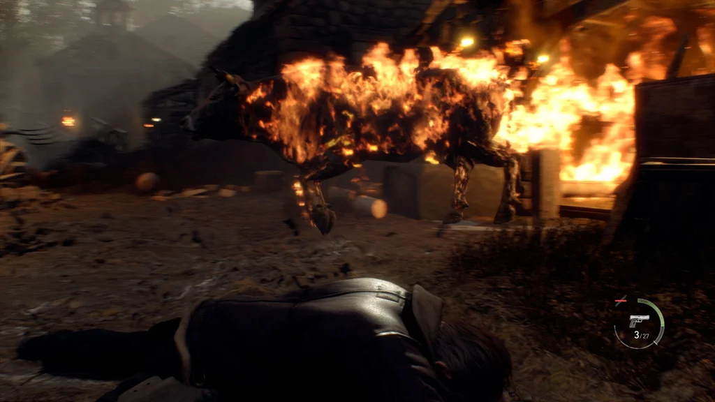 Через інший бік сільської площі - відкритий хлів із коровою всередині. Коли вам на п’яти буде наступати велика група (включаючи Людину з бензопилою), подумайте про те, щоб проскочити через хлів, оскільки це призведе до того, що лампа вгорі впаде та запалить усе — включно з коровою, яка кинеться вперед і вріжеться в будь-кого, кому не пощастить достатньо, щоб бути в зоні дії.
