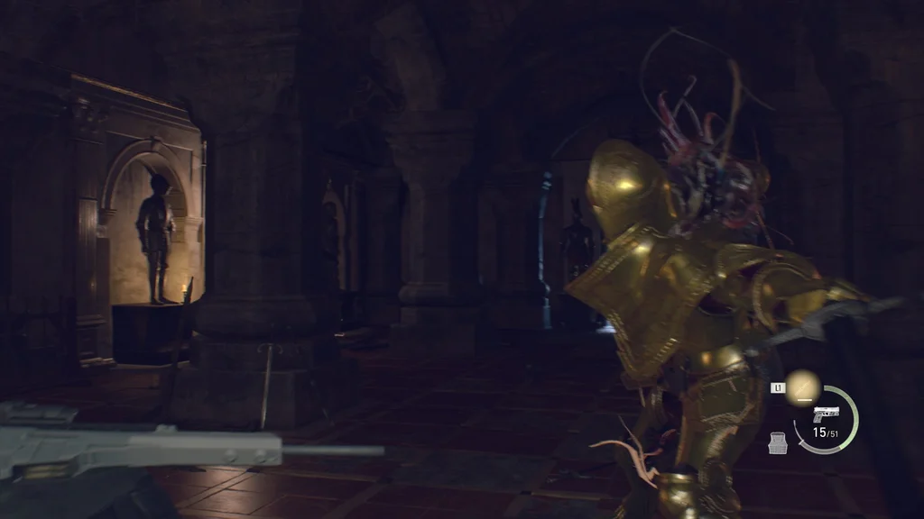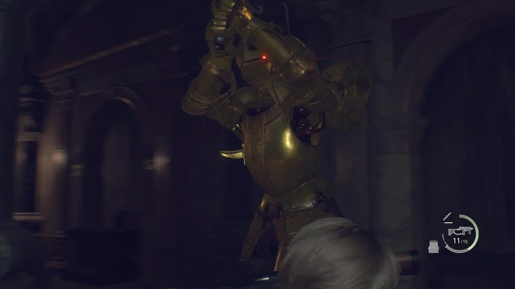 Поверніться наверх і поверніть перші двері праворуч, щоб знову увійти до бібліотеки. Поруч із неактивним підйомником ховається Armadura, але ви можете прокрастися й отримати легкий постріл у її шию, а потім ударом ногою викрити Plaga. Не біжіть надто далеко на південь, інакше ви попередите іншу Армадуру. У разі поразки з обох вийде шпінель, що завжди приємно мати більше.