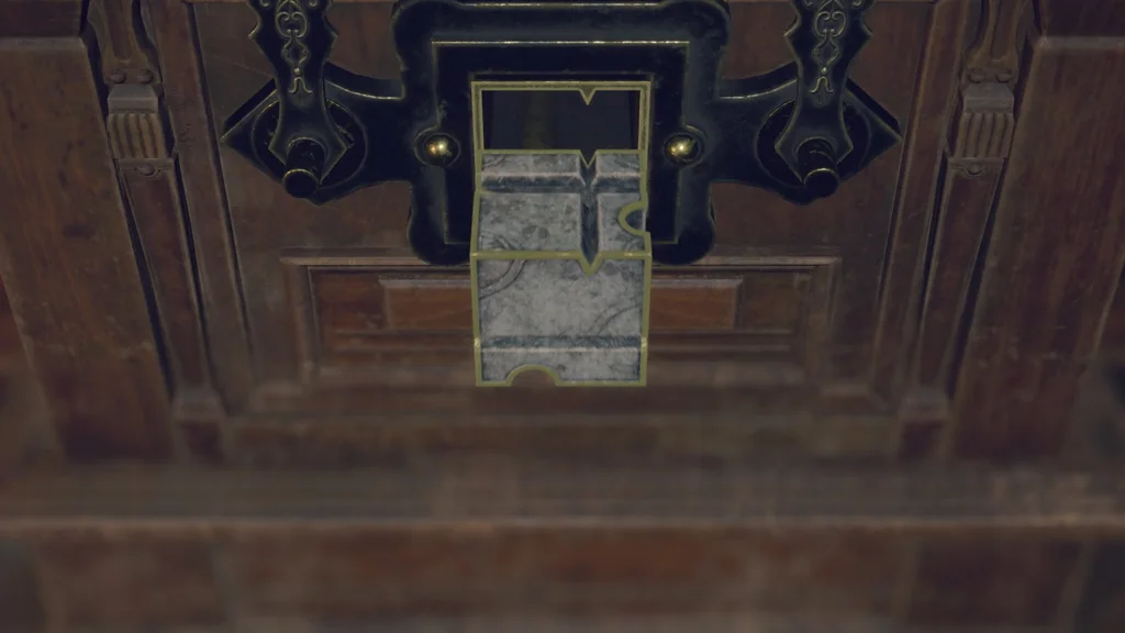 Біля дверей, що ведуть назад до Великої зали, знову використайте свій кубічний пристрій на квадратній скриньці замка. Вам потрібно буде вирівняти коло внизу та трикутник зверху, і ви отримаєте Золоту Рись як нагороду.