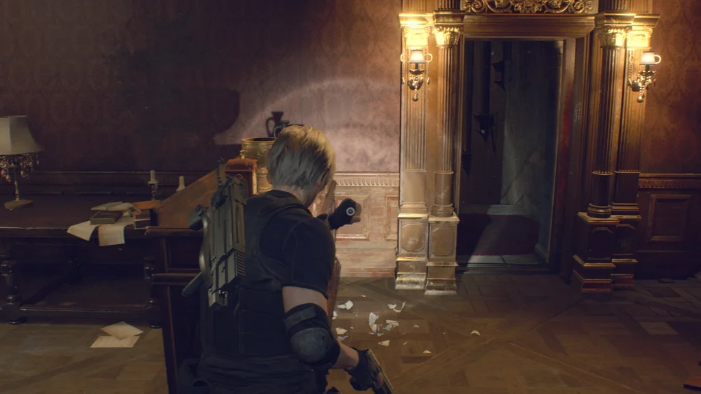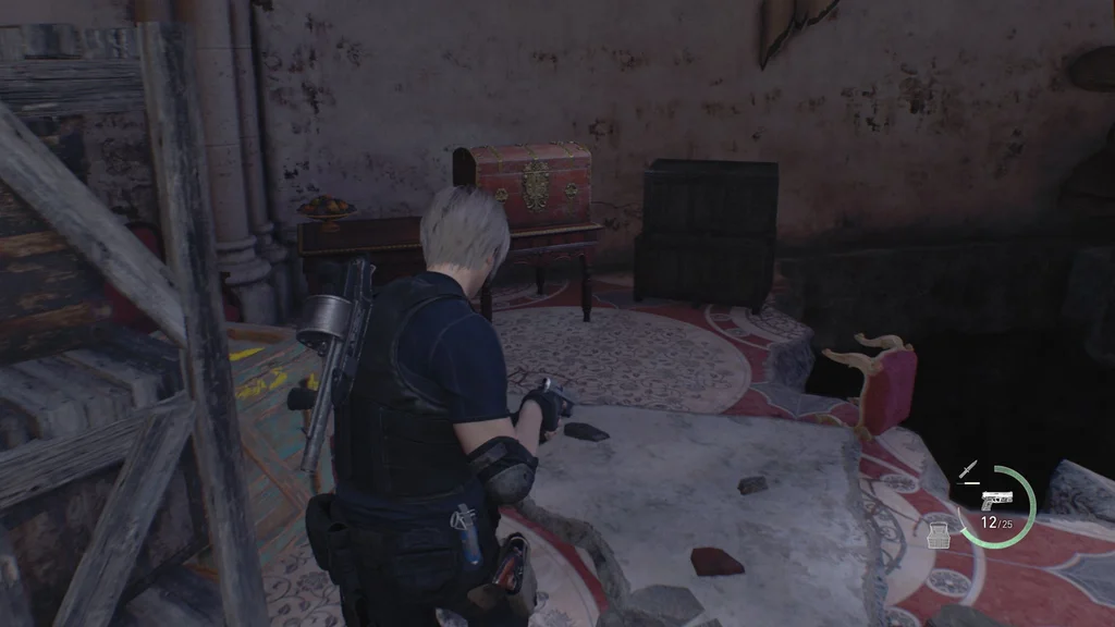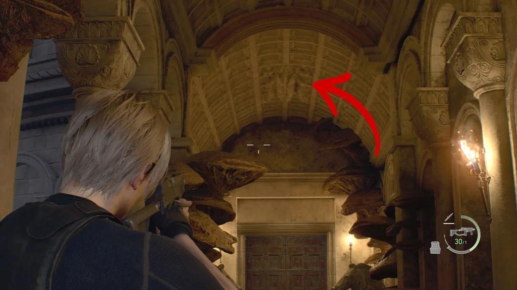 Обов’язково розбийте урну на верхньому поверсі, перш ніж повертатися вниз через бібліотеку, і пройдіть стежкою праворуч на другий поверх, де Ешлі допомогла Леону втекти.