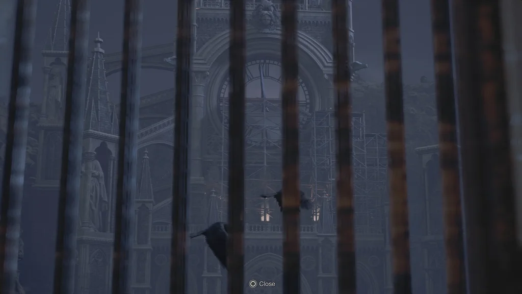 Проходячи повз заґратовані вікна, визирніть назовні, щоб побачити таємничу годинникову вежу, що будується вдалині. У кінці кімнати знайдіть на столі Файл — Хроніки погоні 1, а також гніздо над головою оленя з коричневим курячим яйцем, а потім ідіть у бальний зал.