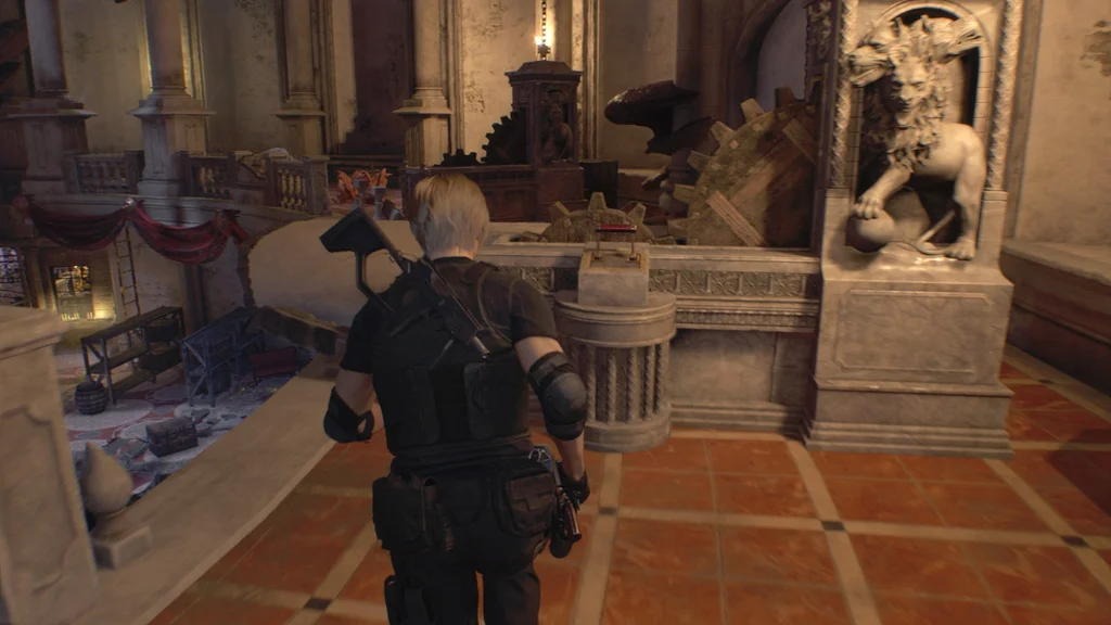 Коли цей розділ почнеться, Леон отримає певну інформацію про те, куди везуть Ешлі — у Тронний зал. Він розташований одразу за Бальним залом, тож це має бути ваша наступна зупинка… лише трохи повернувшись назад. Це варте вашого часу, щоб повторно дослідити деякі території, які Ешлі пройшла самостійно, щоб отримати додаткові винагороди.
