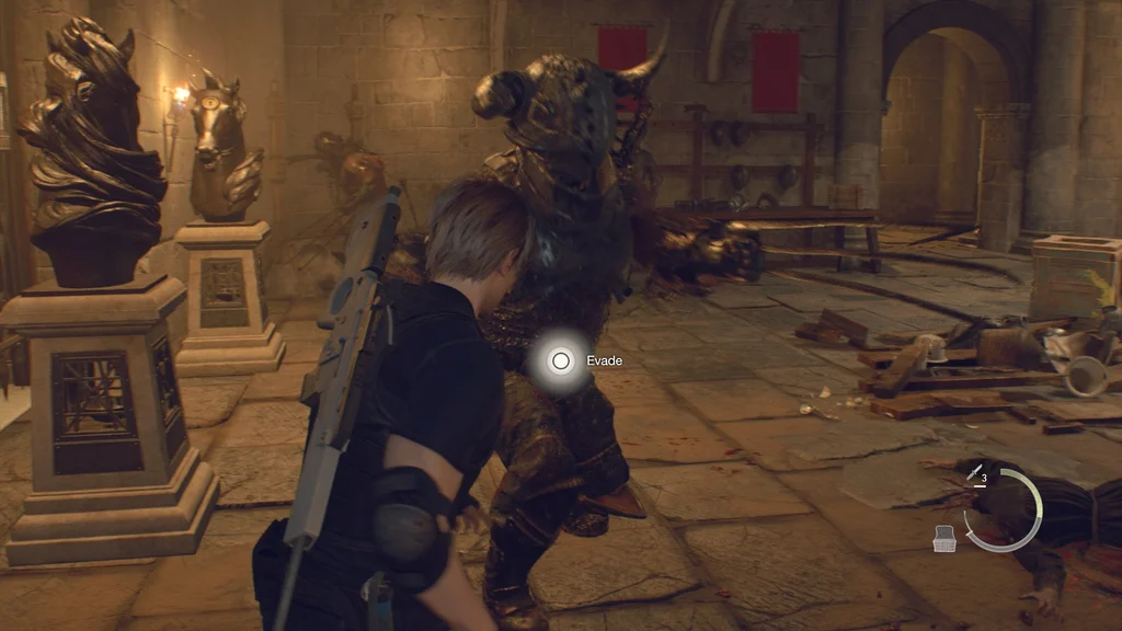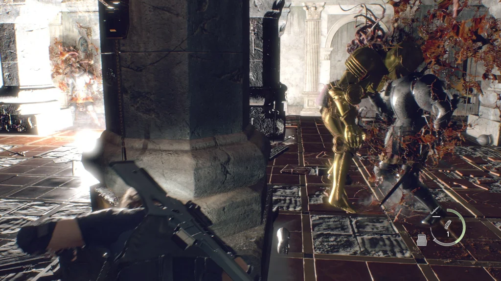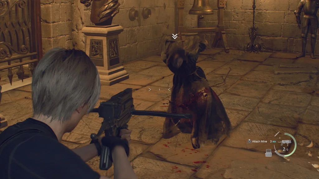 Щойно це стосується лише вас і Гаррадора, по черзі відволікайте їх дзвіночками, що залишилися, і робіть найпотужніші постріли, поки вони відволікаються, або вдарте їх у спину, якщо у вас є запасні ножі, як-от ножовий ніж із правого боку зала. Не будьте надто жадібними і завжди пам’ятайте, щоб не зводити очей, щоб дізнатися, де знаходиться кожен гаррадор, перш ніж здійняти шум.