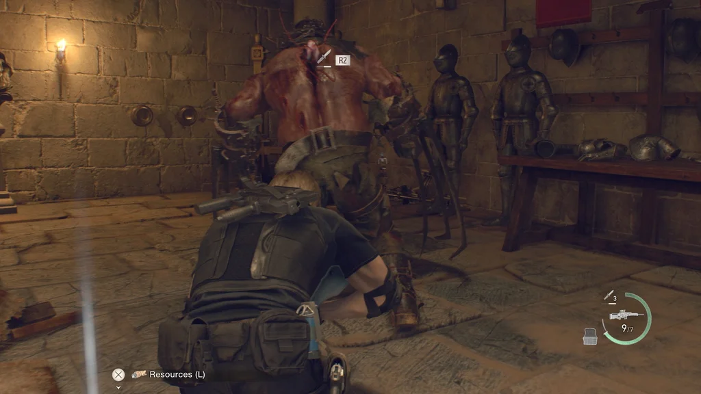 Спроба викрити обидві менші голови плаги може дати вам можливість кинути спалахову гранату, усунувши їх і залишивши Безжального Лицаря одного та приголомшеного.
