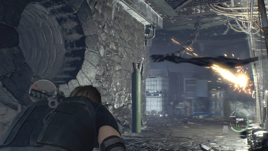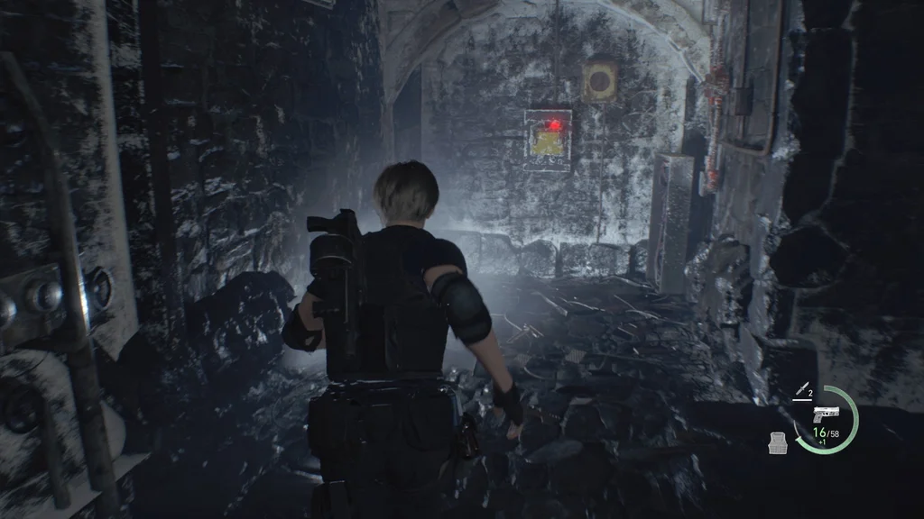 Дійшовши до підйомного мосту, вам знадобиться спосіб опустити міст, і, на щастя, ліворуч є кілька безкоштовних патронів для пістолета. Шукайте противагу праворуч від мосту, щоб стріляти в нього, але міст опуститься лише наполовину.