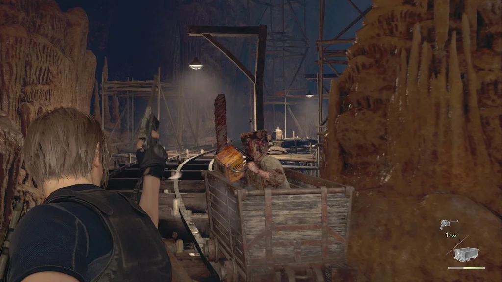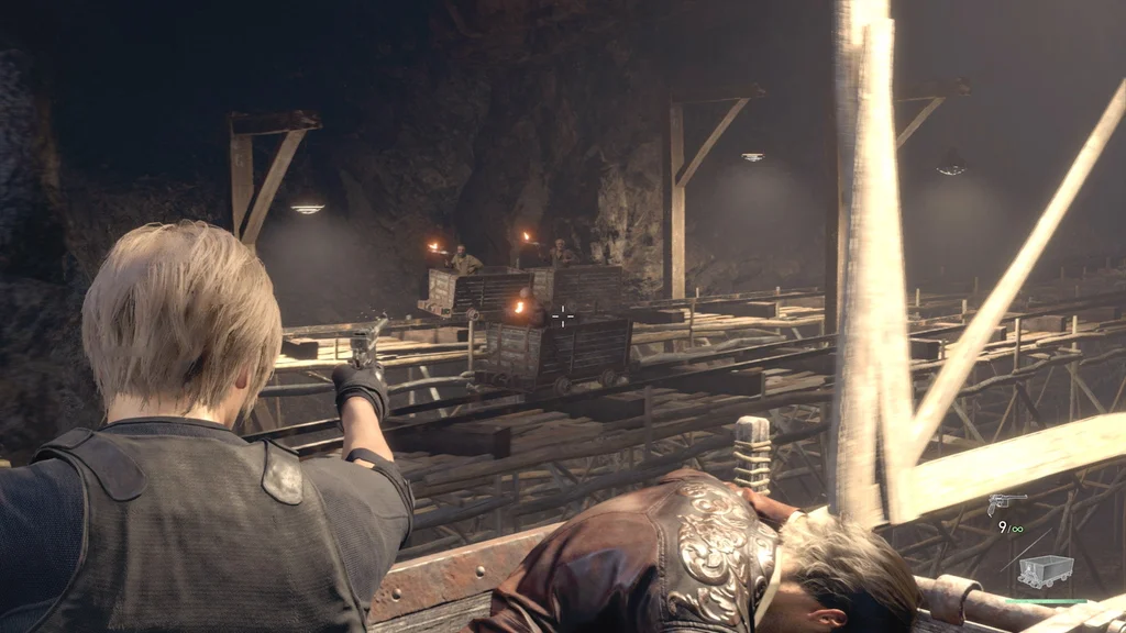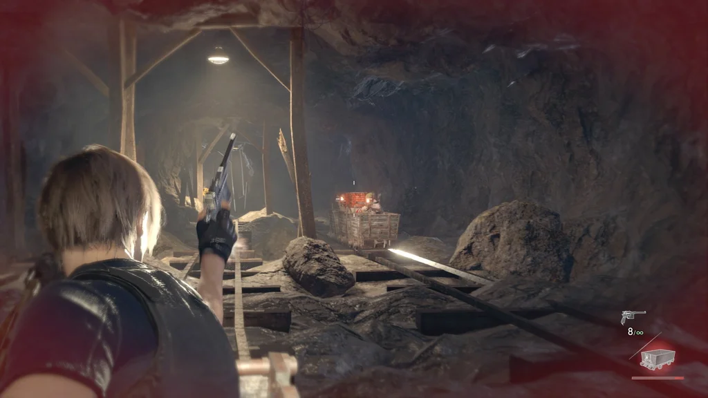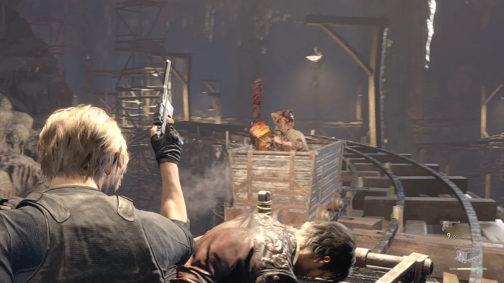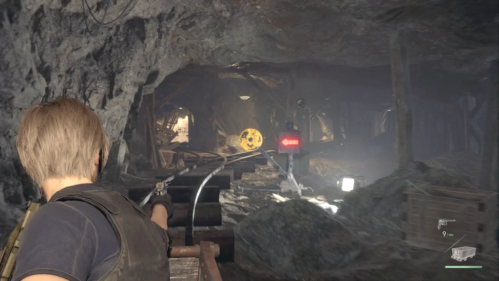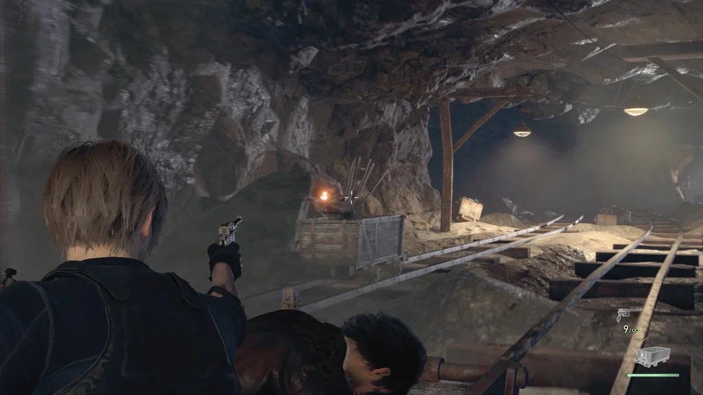 Вам також буде надана можливість використання пістолету Луїса Red9 (і його запас нескінченних патронів). І так само, як у битві з Дель Лаго, ваша шкала здоров’я замінюється на мінний візок — якщо він зазнає достатньої шкоди від небезпек або ворогів, вас уб’ють.