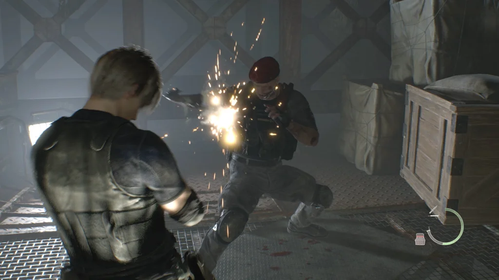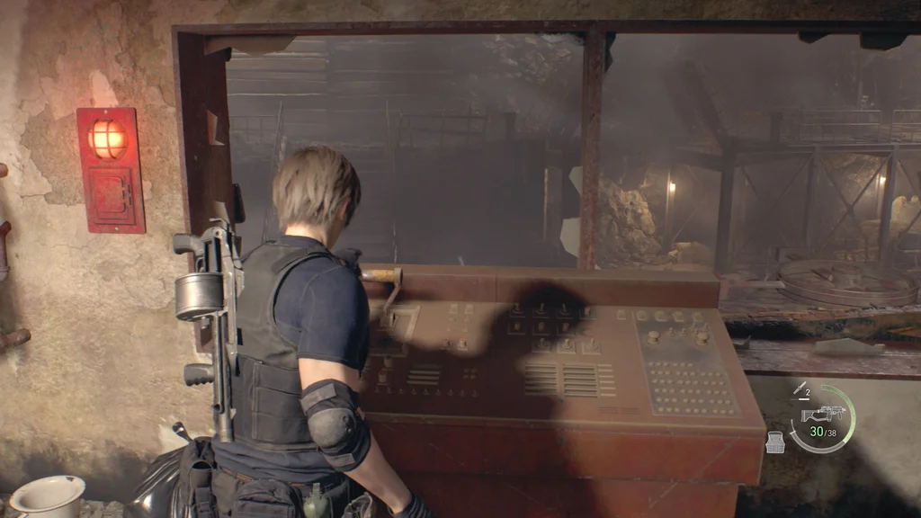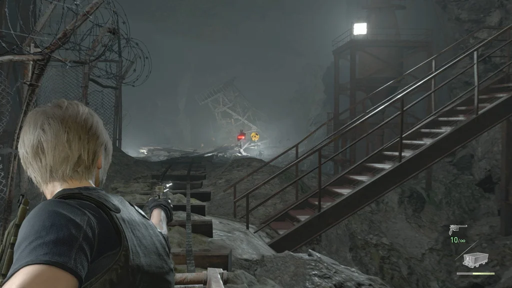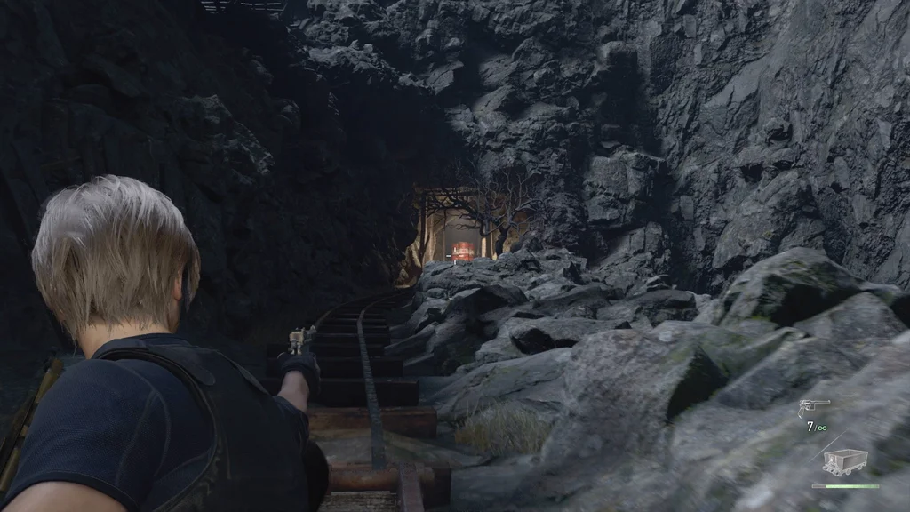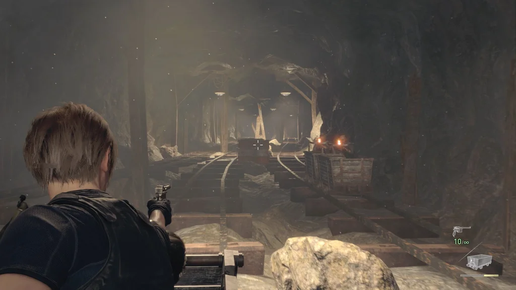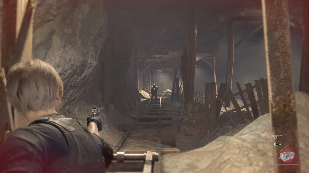 Вам також буде надана можливість використання пістолету Луїса Red9 (і його запас нескінченних патронів). І так само, як у битві з Дель Лаго, ваша шкала здоров’я замінюється на мінний візок — якщо він зазнає достатньої шкоди від небезпек або ворогів, вас уб’ють.