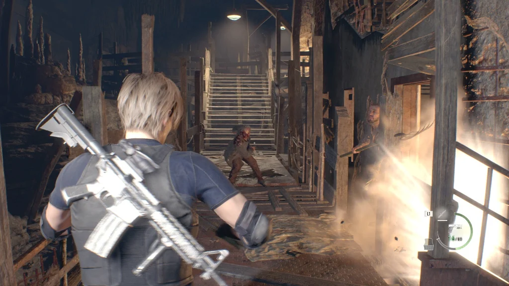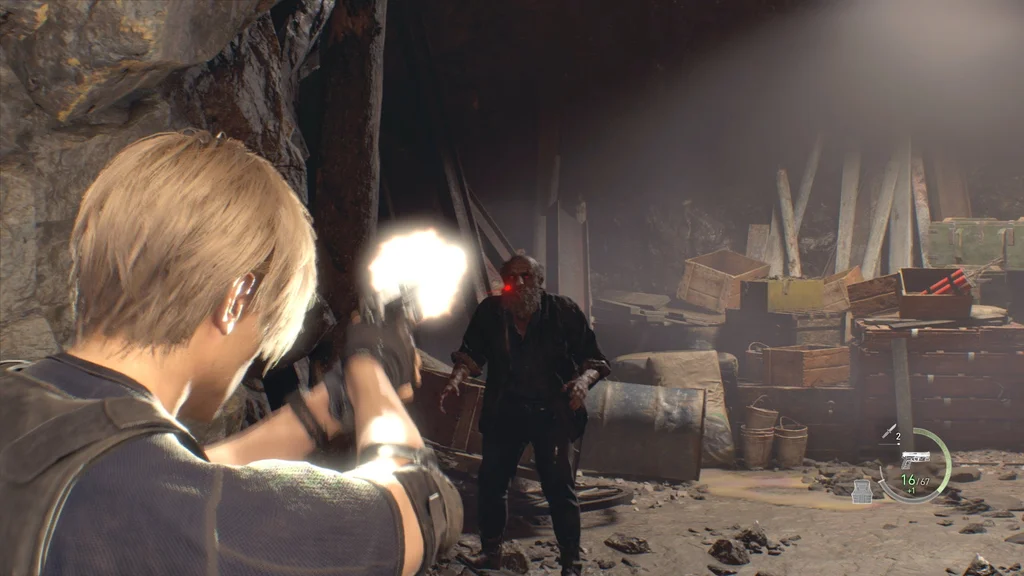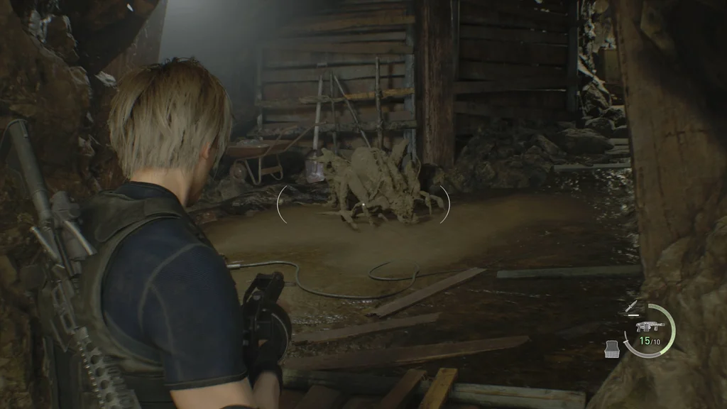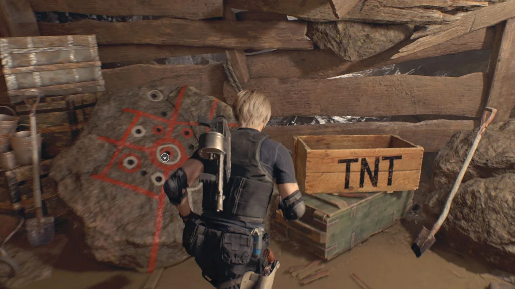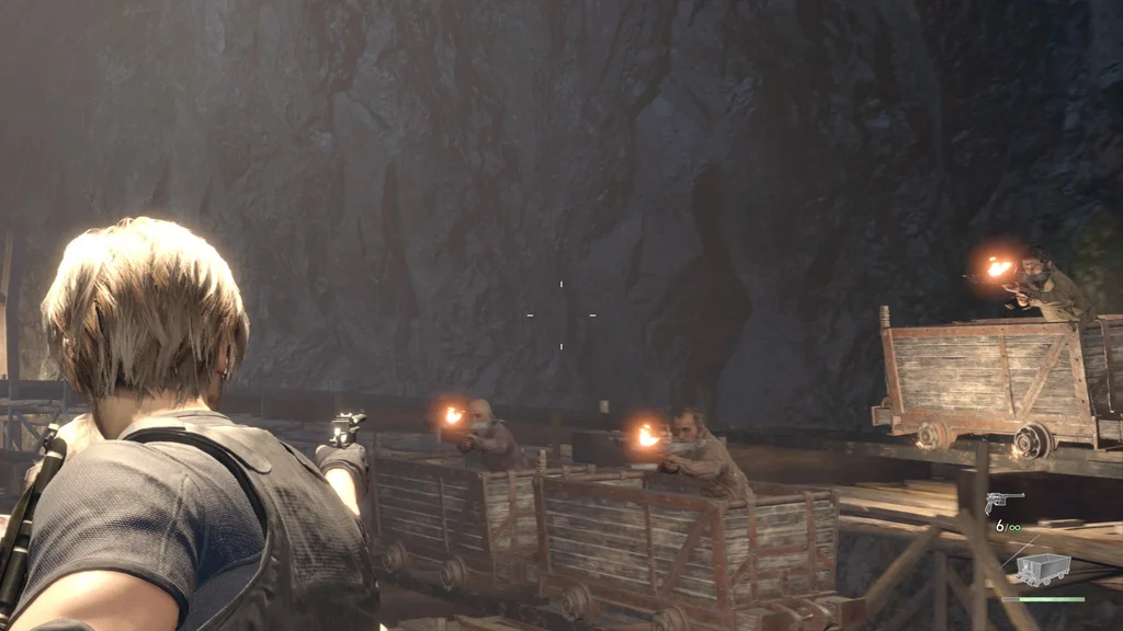 Піднявшись стежкою, ви потрапите у велику шахтарську кімнату, де повзають ганадо, селяни, які стали шахтарями. З точки зору ви ще не можете побачити всіх ворогів, але є кілька, які блукають на верхньому поверсі, а також деякі ліворуч на нижній платформі, по яких тепер можна стріляти з гвинтівки, включно з динамітом. сходи, і один вище, у якого, можливо, Плага виривається з голови.