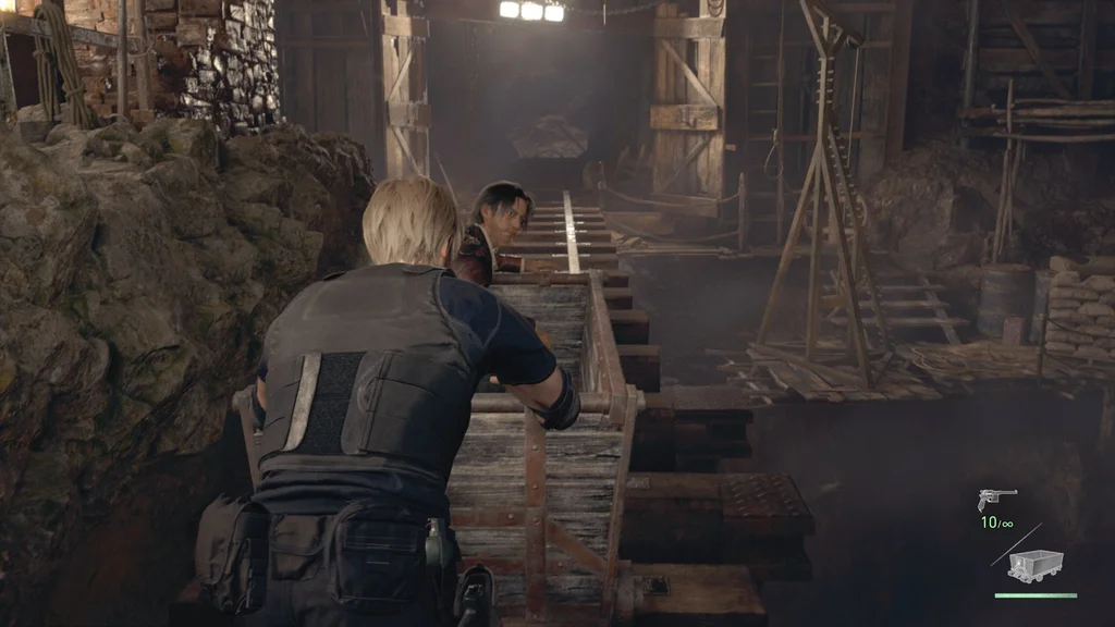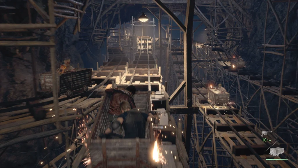Зберігайте на сусідній друкарській машинці, а потім застрибуйте, щоб вирушити на веселу поїздку на шахтному візку з Луїсом. Якщо ви грали в класичну гру Resident Evil 4, важливо знати, що деякі частини цього розділу змінилися.