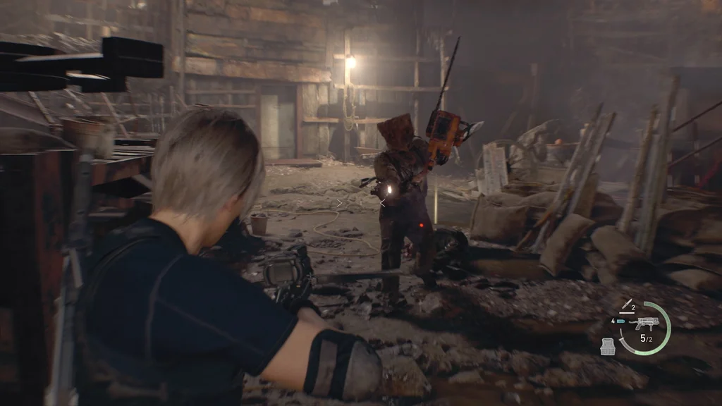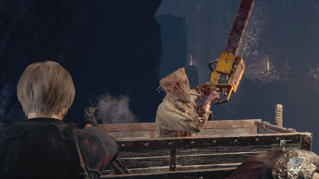 Коли ви повернетеся всередину, будьте готові до повернення Селянина з бензопилою. Як тільки він під’їде ліворуч до вашого візка, відкрийте вогонь, щоб перервати його дикий розмах і утримати його.