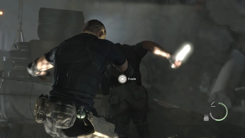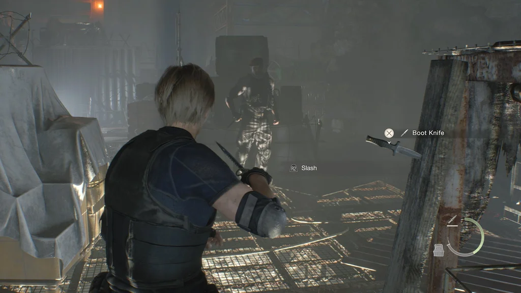 Проти свого старого наставника Леону доведеться показати, чого він навчився, вступивши в цей бій лише з ножами. Це означає, що ви не зможете поміняти іншу зброю, окрім свого бойового ножа або будь-якого запасного ножа, який у вас може бути. На щастя, якщо ваш ніж зламався раніше, і ви забули його відремонтувати, праворуч від того місця, де ви починаєте бій, є заміна.