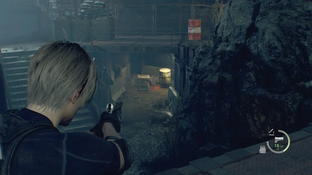 Будьте готові зіткнутися з метальником Молотова на правому верхньому рівні та арбалетом на лівому, а також з іншими солдатами, які можуть породити Плагу після поразки, тому мати під рукою світлову гранату – гарна ідея. Якщо всі вони стрибнуть на нижній рівень, пробіжіть через землю Бастиону, щоб пройти повз один із двох вибухових стволів і підірвіть їх, коли наблизитесь. Є також кілька боєприпасів для пістолетів-кулеметів на одному з ящиків із мішками з піском навколо цієї області з північного боку.
