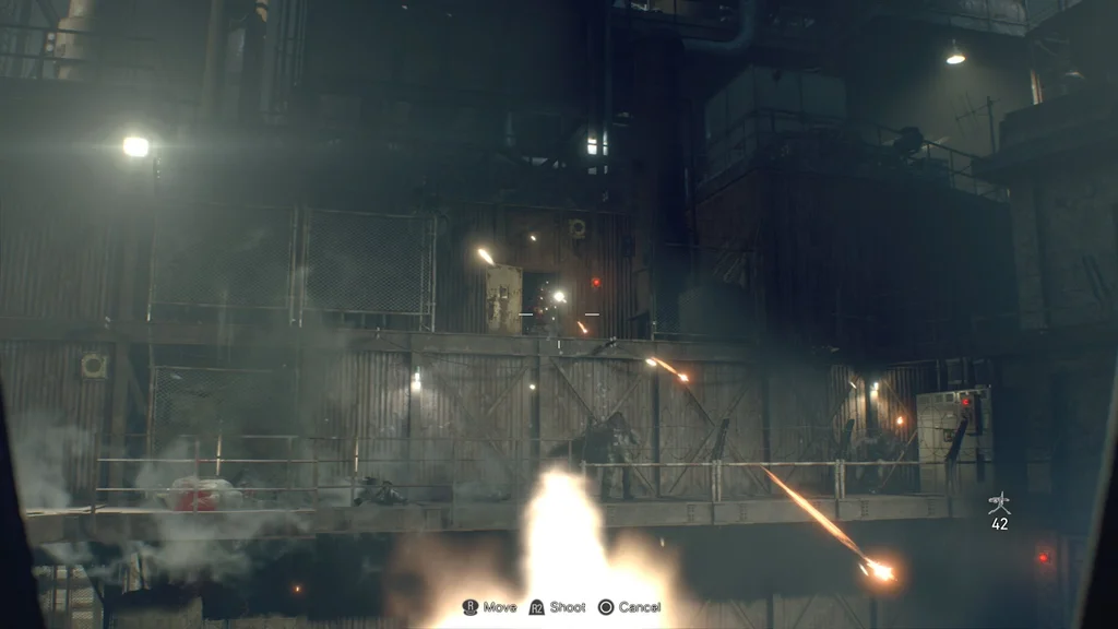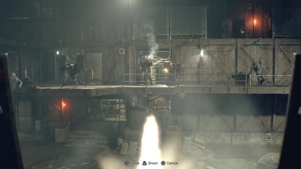 Кілька відсталих можуть залишитися в зоні, коли ви просуваєтесь, ви можете або відібрати їх, або використати вибуховий ствол біля спини… або так само, як Майк, пройти повз, щоб ще раз пройти. Обов’язково озирніться та візьміть трохи пороху серед ящиків ліворуч і спрей першої допомоги вздовж металевих опорних балок зруйнованої споруди ліворуч.