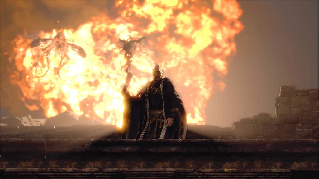 Обов’язково знайдіть хвилинку, щоб зайти в самі руїни, щоб знайти сходи на нижчий рівень.Тут ви знайдете шлях до великої освітленої святині з синьою скринею e кінці, у якій зберігається скарб Королівського посоха, а також епітафія на Скелі збоку.