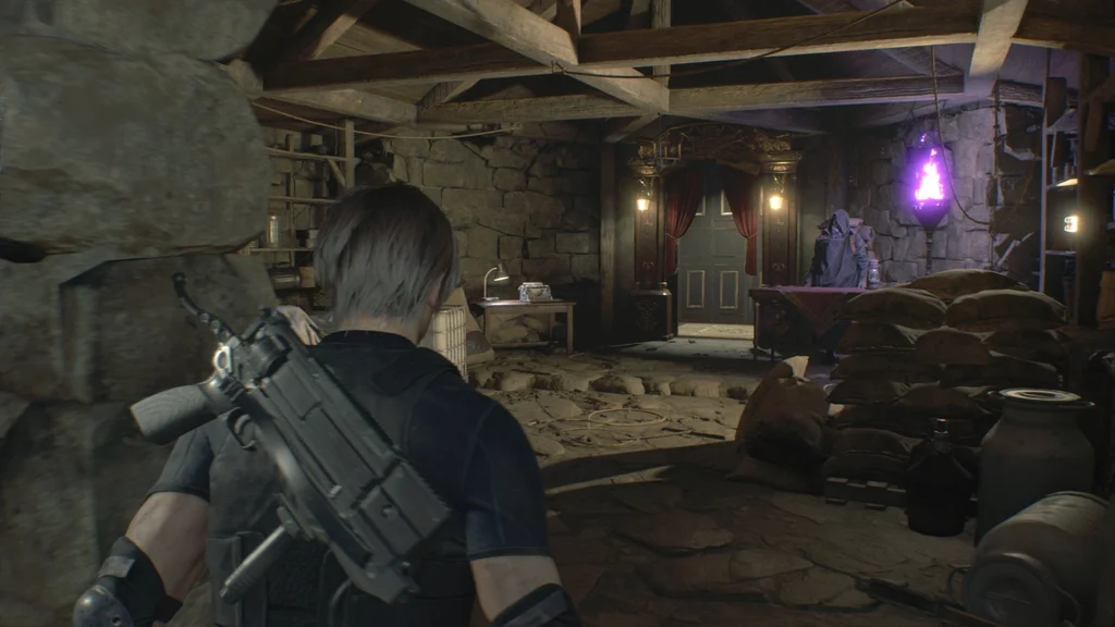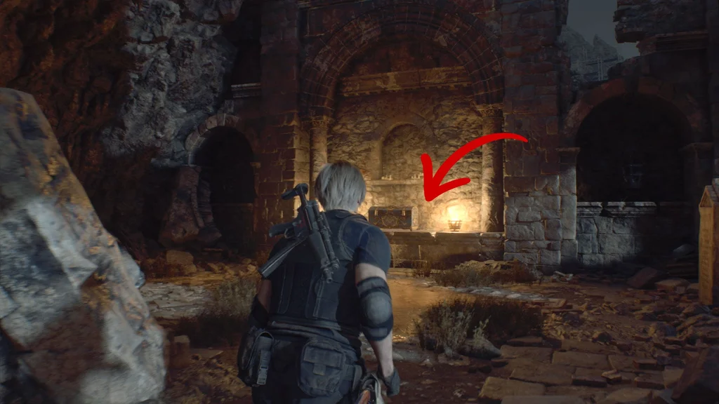 Коли ви входите до Святилища, прямуйте до дальнього кінця, і з’явиться ролик, коли Леон поспішає на допомогу Ешлі.