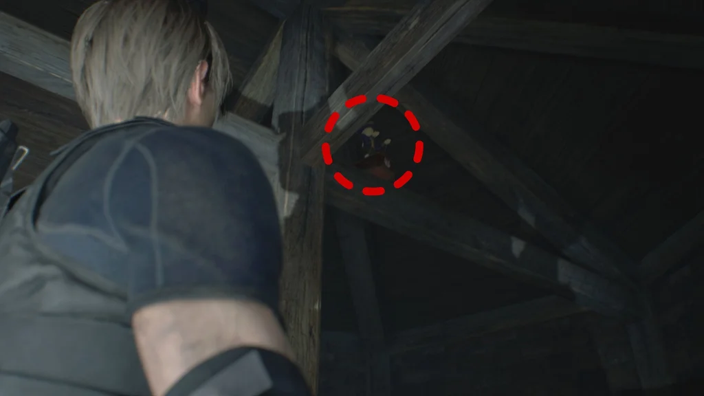 У тій самій маленькій бічній кімнаті, що й скриня зі скарбами Splendid Bangle, подивіться на головну дерев’яну опорну колону в кімнаті та йдіть за нею до стелі вище. Маленька заводна іграшка ховається на крокві тут, збоку від центральної колони на піднятій балці, і вам потрібно вистрілити в неї здалеку.