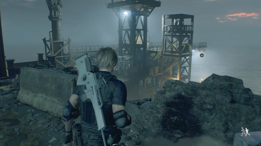 Коли ви будете готові покінчити з цим, вирушайте на вулицю, щоб побачити Аду Вонг, прив’язану на завантажувальних доках, спонукаючи Леона попросити Ешлі почекати позаду, поки він спускається на доки.