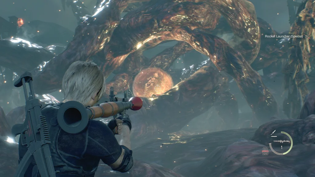 Тримайте натиск, роблячи невеликі рухи, щоб нахилитися або ухилитися від атак щупальців (зніміть приціл, якщо важко помітити його атаки), і після того, як буде завдано достатньо шкоди, Ада кине Леону подарунок, як і в останній пригоді.