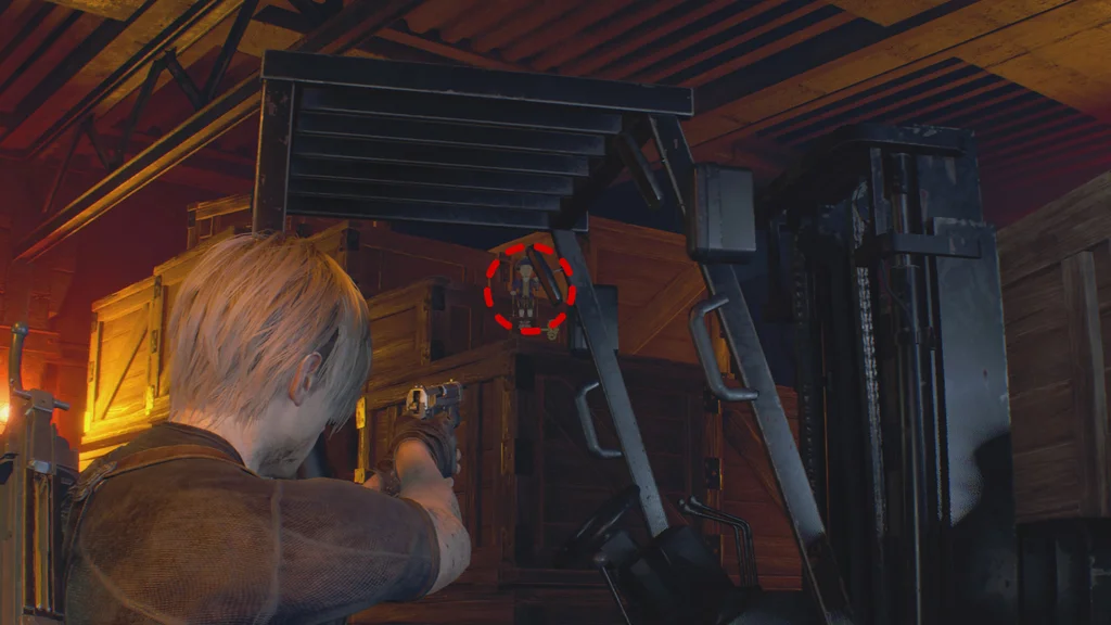У першій кімнаті, повній звивистих Ганадо та Плаги, знайдіть з правого боку зелений навантажувач і огляньте стос ящиків позаду нього, щоб побачити останню іграшку, яку вам потрібно вистрілити.
