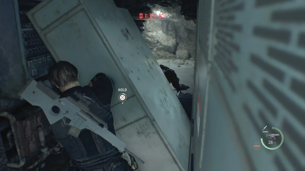 Дійшовши до кінця верхнього рівня, знайдіть боєприпаси для гвинтівки на ящику ліворуч, ресурси (S) праворуч і розбийте всі стволи, перш ніж повернутися до кімнати Святилища.