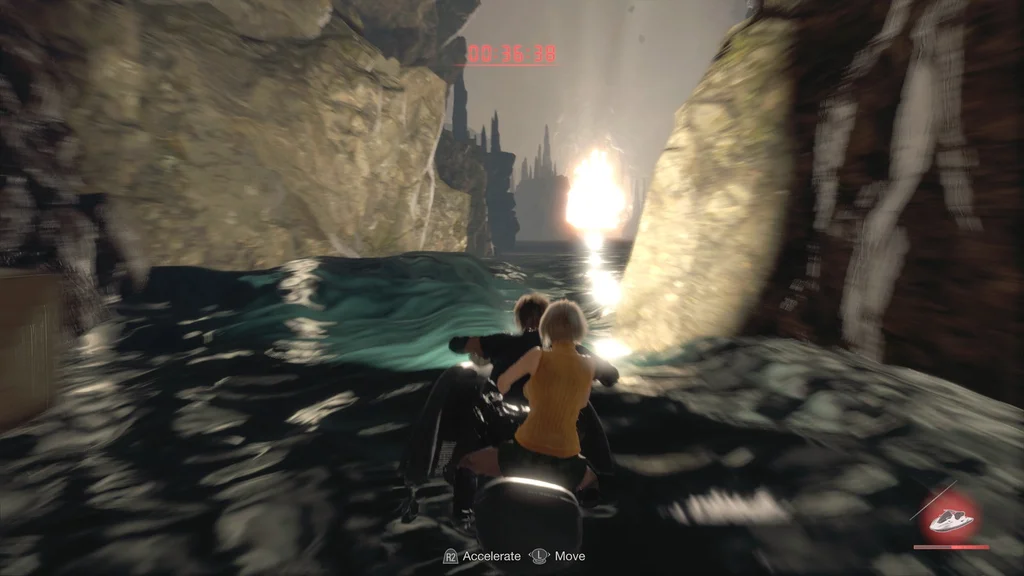 Ада забере її з призом, але Леону доведеться знайти інший вихід з Ешлі, перш ніж усе вибухне. На щастя, ви отримаєте ключ від водного скутера, який допоможе вам у дорозі.