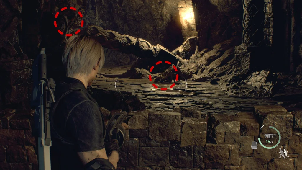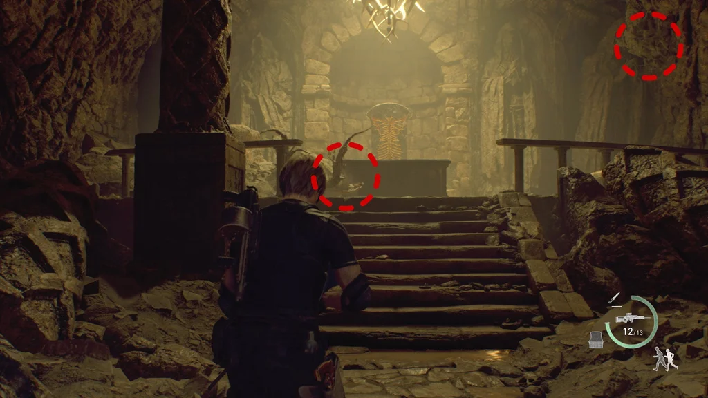 Ви також можете піти стежкою під зламаною колоною, де ви знайшли Ешлі, але стережіться ще двох Новистадорів, які ховаються поблизу: один ліворуч від маленьких сходів перед вівтарем, а інший на правій стіні біля статуй.