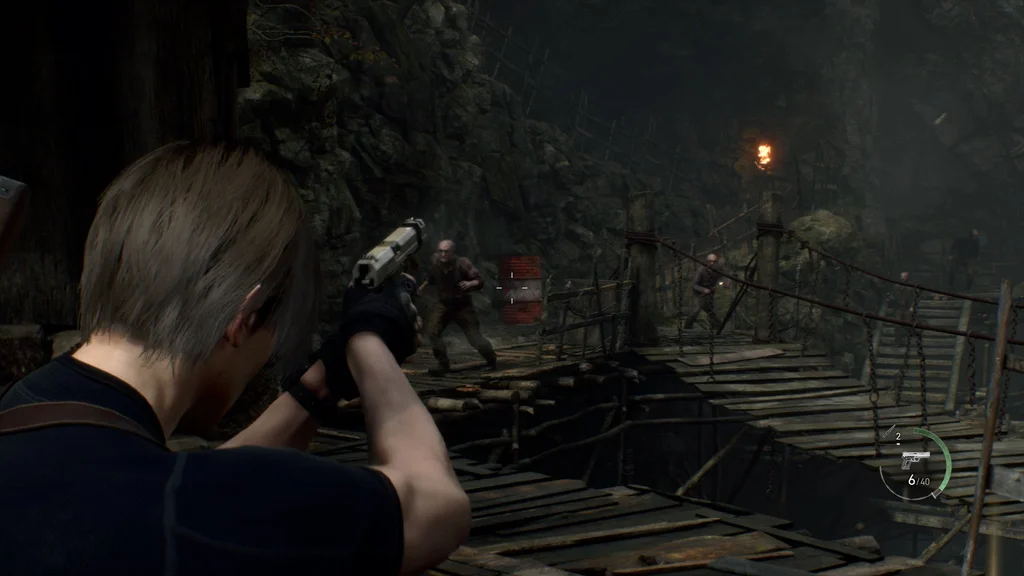Для початку, якщо ви купили гвинтівку та приціл, стріляйте нею у власника динаміту, який проходить найдальший міст від вашої вихідної позиції. Потім спустіться вниз і приготуйтеся до бою з кількома Ганадо, що підіймаються з рампи праворуч. Спробуйте утримати їх на відстані за допомогою дробовика або цільтесь у їхні ноги, щоб приголомшити.