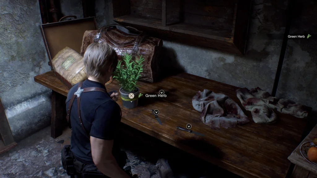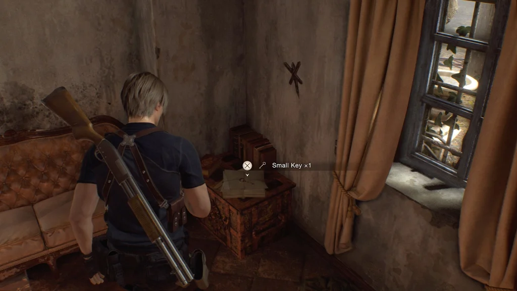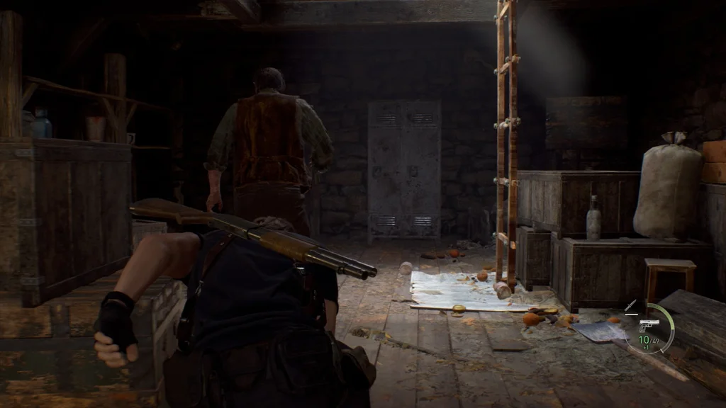 Якщо ви підете вниз до місця, де за будівлею впав другий метальник динаміту, ви знайдете вікно, крізь яке можна стрибнути (оскільки вхідні двері замкнені зсередини). Ганадо всередині має бути відвернутий убік, дозволяючи вам швидко піднятися та вдарити його ножем, і дати вам трохи місця, доки вороги не підуть за вами. Тут у шафках є деякі предмети, як-от світловий гранатомет і червона трава, але не затримуйтесь тут, інакше ви будете оглушені.