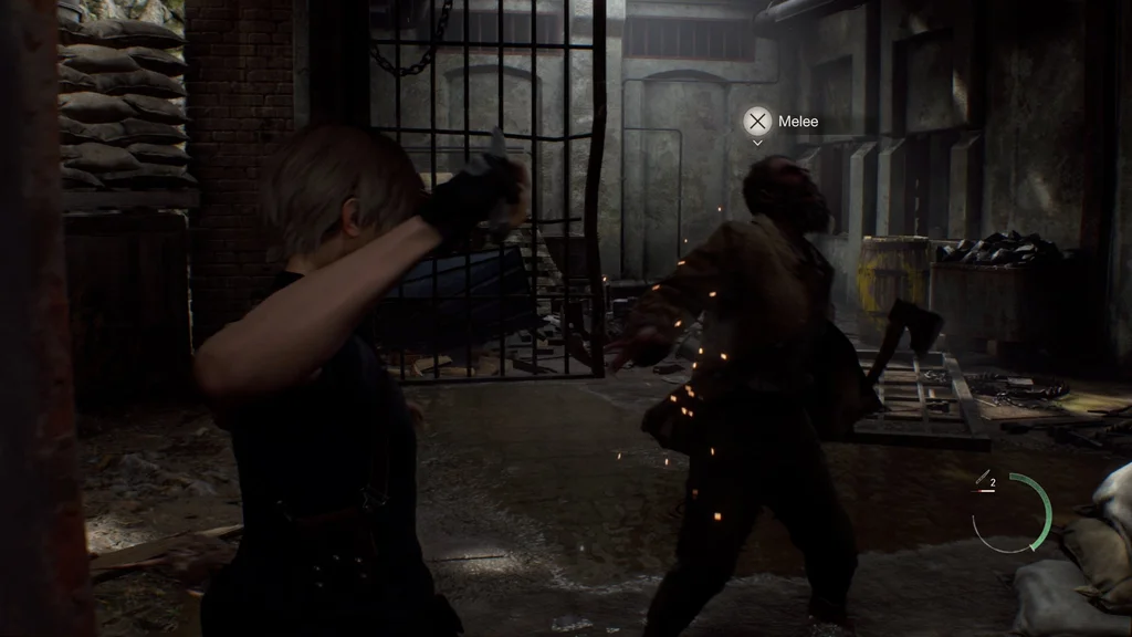 За дверима на вас чекає ще один Ганадо, який буде дивитися на вас, тож замість того, щоб підкрадатися, настав час потренуватися у парируванні. Нехай він підійде до вас і зробить замах сокирою, а в останній момент підніме ваш ніж. Якщо у вас все вийде, ви можете кинутися вперед і вдарити його ногою, якщо ж ні, ви просто заблокуєте його, але можете продовжувати спроби, доки не впораєтеся.