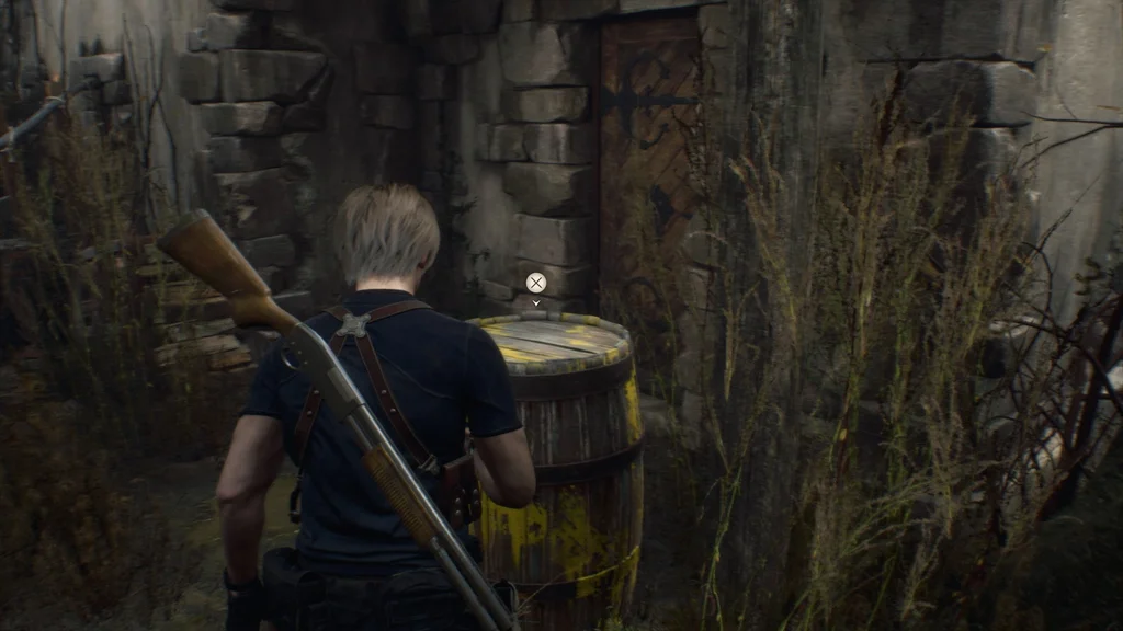Обійдіть узбіччя та остерігайтеся ведмежих пасток, коли проходите повз ще одну замкнену браму зі знаками розрізнення, і розбийте кілька бочок, коли будете петляти до задньої частини садиби. Тут ви знайдете незамкнені задні двері з доступом усередину.