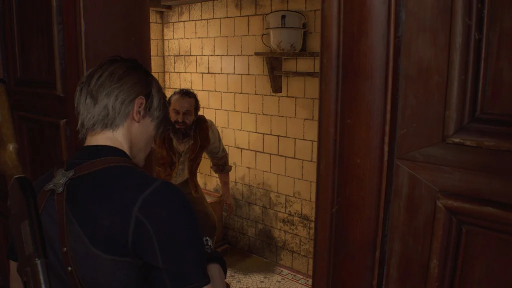У задній частині садиби є довгий хол, повз сходи. Якщо ви хочете бути грубим, відкрийте двері під сходами, щоб знайти Ганадо, який робить свої справи у ванній, і допоможіть йому прибратися.