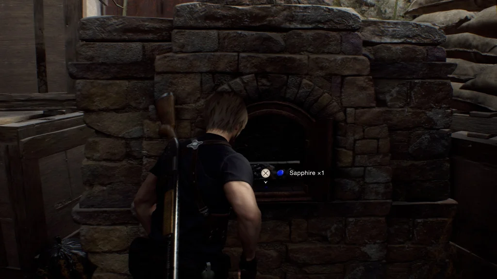 Після перемоги над жителем села у відкритій фабричній кімнаті перевірте ліву частину кімнати на наявність двох великих цегляних печей і відкрийте двері, щоб знайти в одній патрони для пістолета, а в іншій — скарб сапфірових каменців