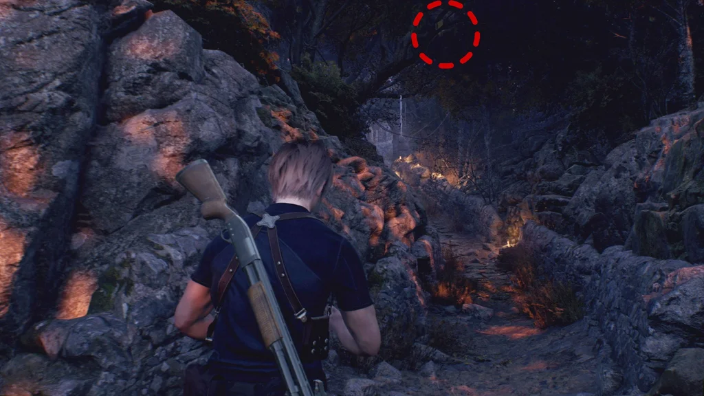 Коли ви рухаєтеся прямо вниз на більш мілководді, подивіться на високому виступі на жителя села з арбалета, який стріляє вогняними стрілами. Ви можете вдарити по ньому кількома власними зарядами або вдалими пострілами з пістолета, давши прицілу мить, щоб зафіксуватися.