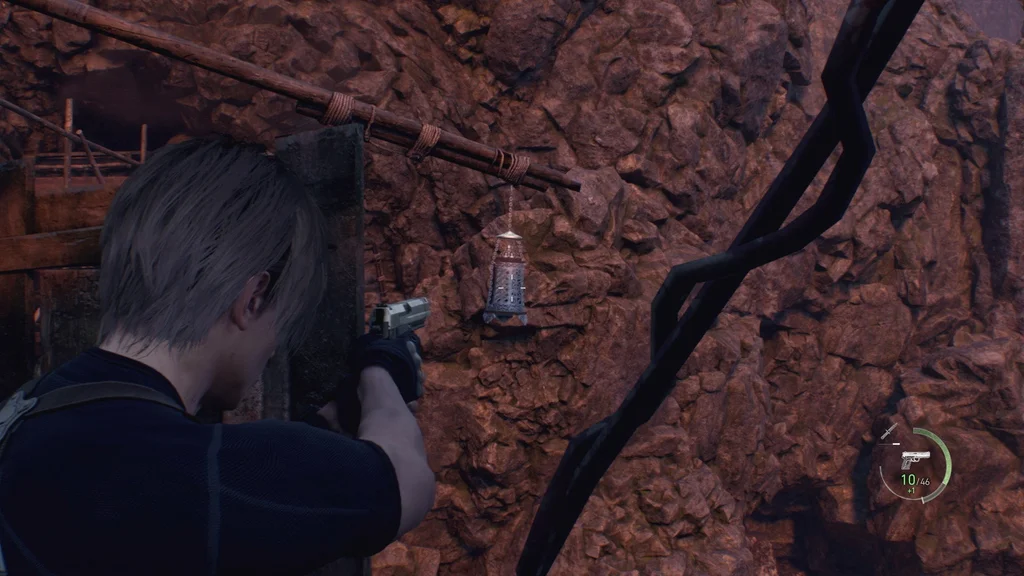 Скарб легко пропустити, якщо ви не почуєте скрипучий звук, але подивіться прямо вздовж перехрещених мотузок, щоб знайти срібний ліхтар у центрі, і підстреліть його, щоб відкрити дорогоцінний камінь, який ви можете забрати та продати.