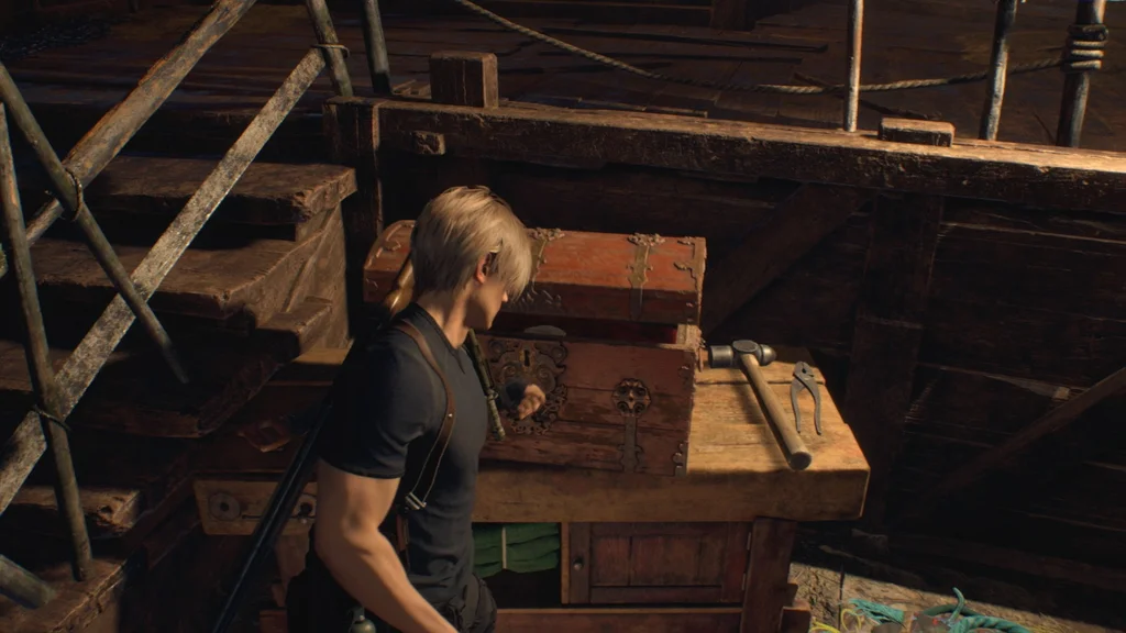 Повернувшись у схованку торговця, скористатесь малим ключем, який ви отримали на рибній фермі, щоб стрибнути вниз до пристані під схованкою, і відчинити тут ящик, щоб отримати латунний кишеньковий годинник, а потім продати його нагорі, щоб покращити свої предмети.